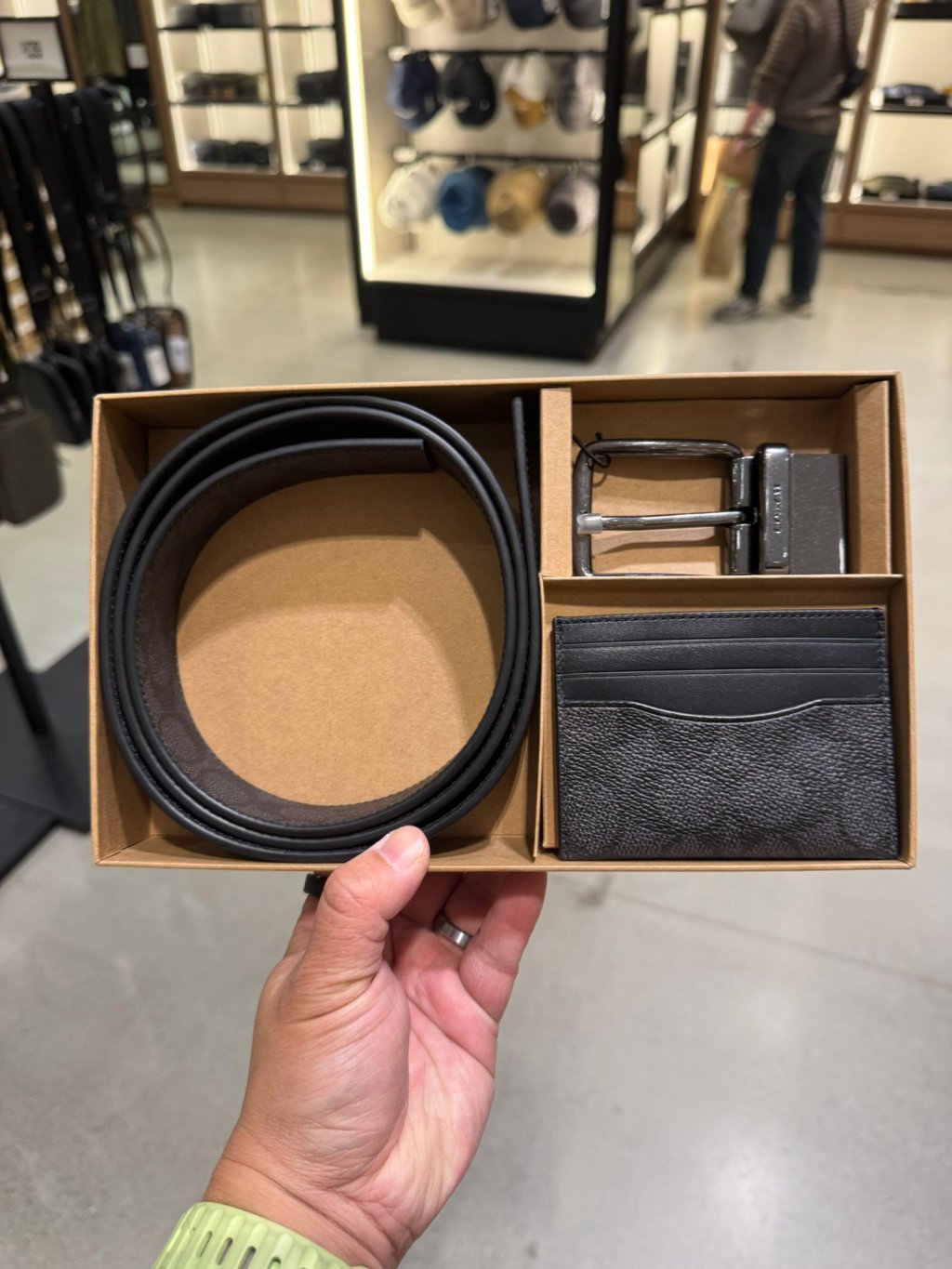 主頁 Coach 男裝皮帶 + 卡套禮盒 (滿版黑 Charcoal/Black)