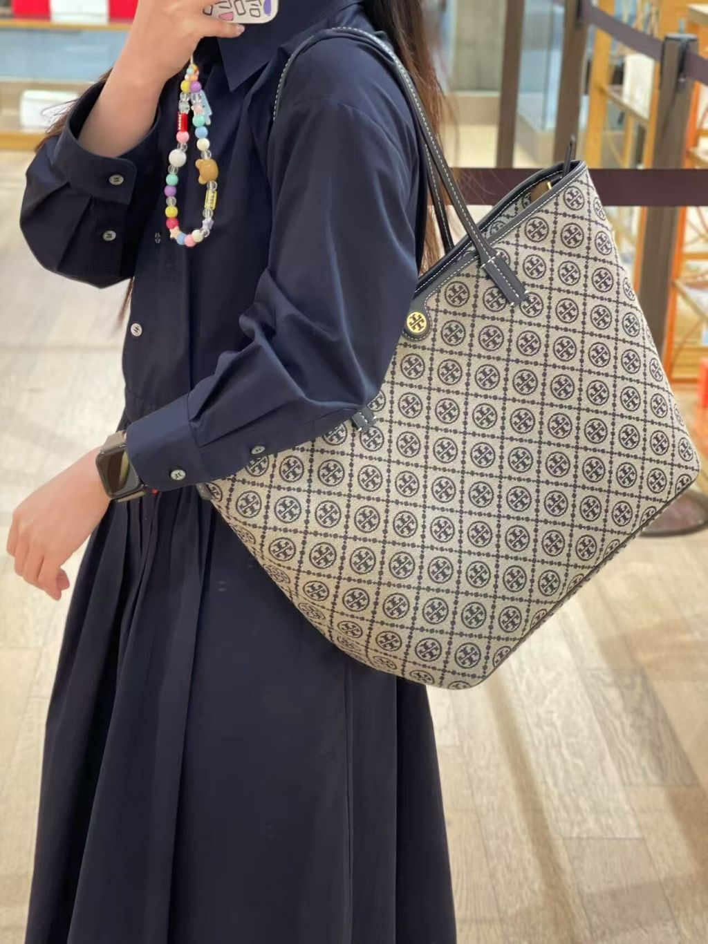 主頁 (專門店) Tory Burch T monogram zip tote 拉鏈 Tote (深藍 Navy)