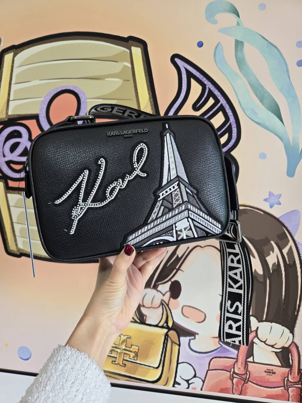 (背面有刮痕) Karl Lagerfeld Maybelle Camera 老佛爺雙拉鏈相機包 (黑 x Eiffel Tower)