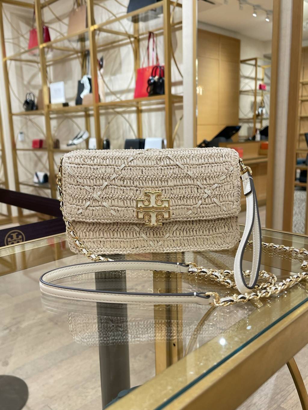 🈹️清貨 Tory Burch Britten chain wallet wristlet (WOC) 草編 Raffia