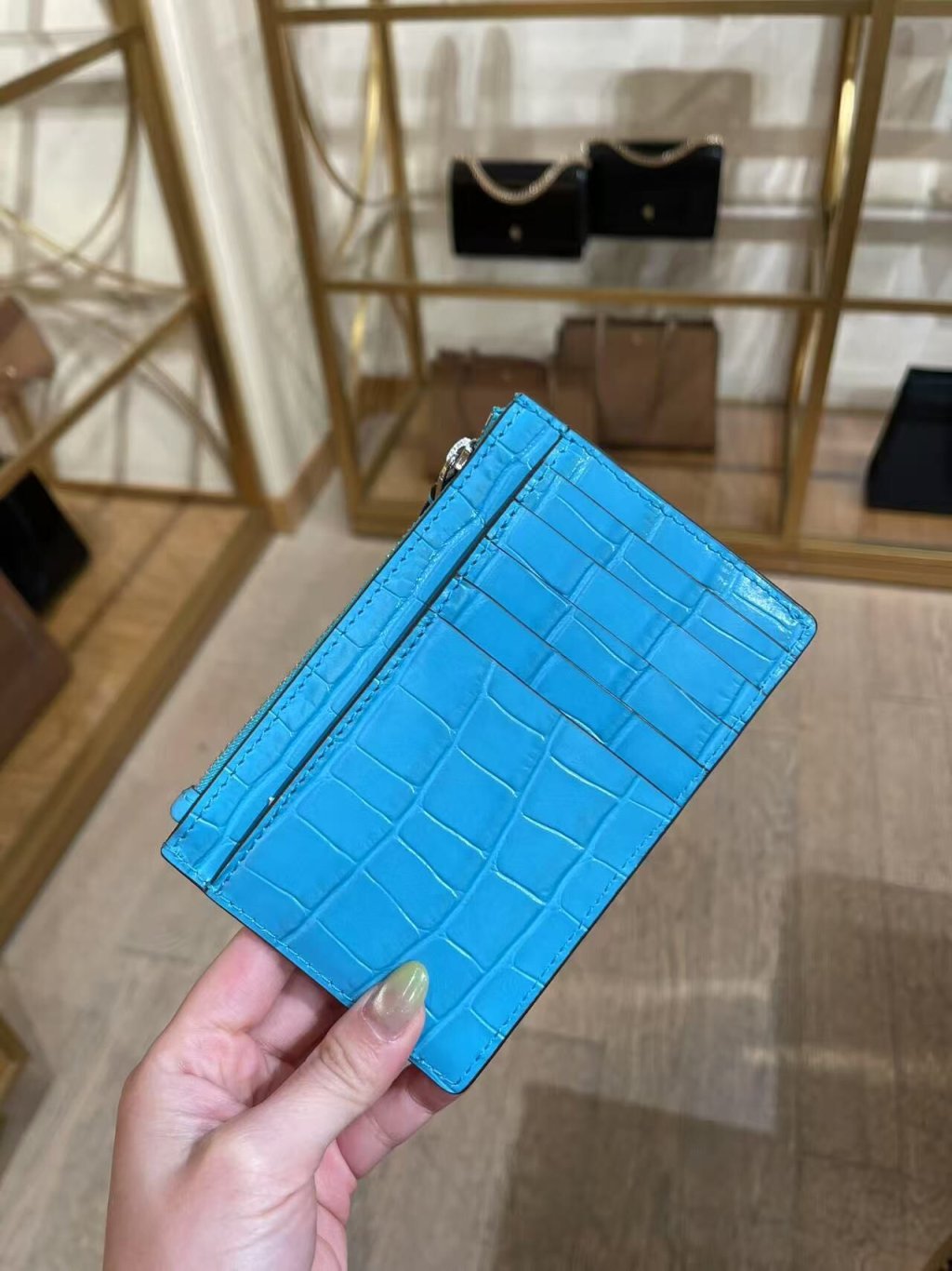 🈹️清貨 Tory burch Britten Zip card case (壓紋 Blue Croc)