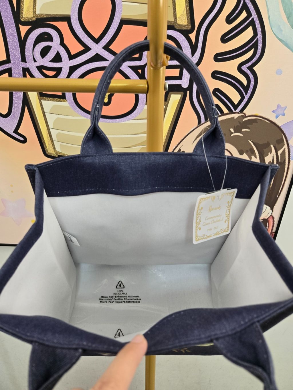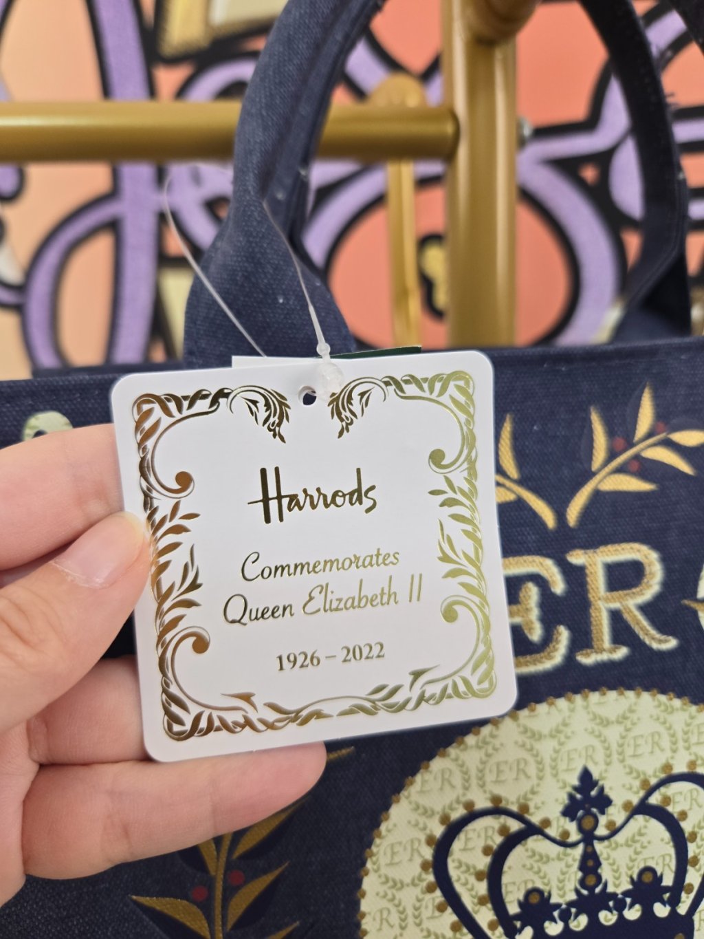 Harrods Queen ER Shopping Bag (Small) Navy