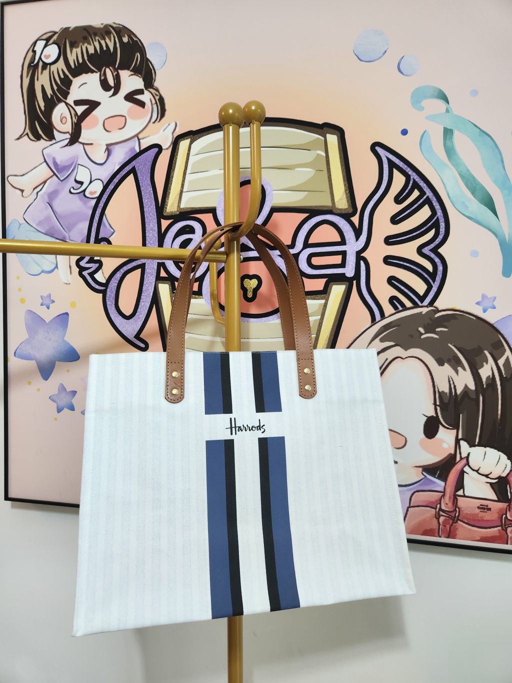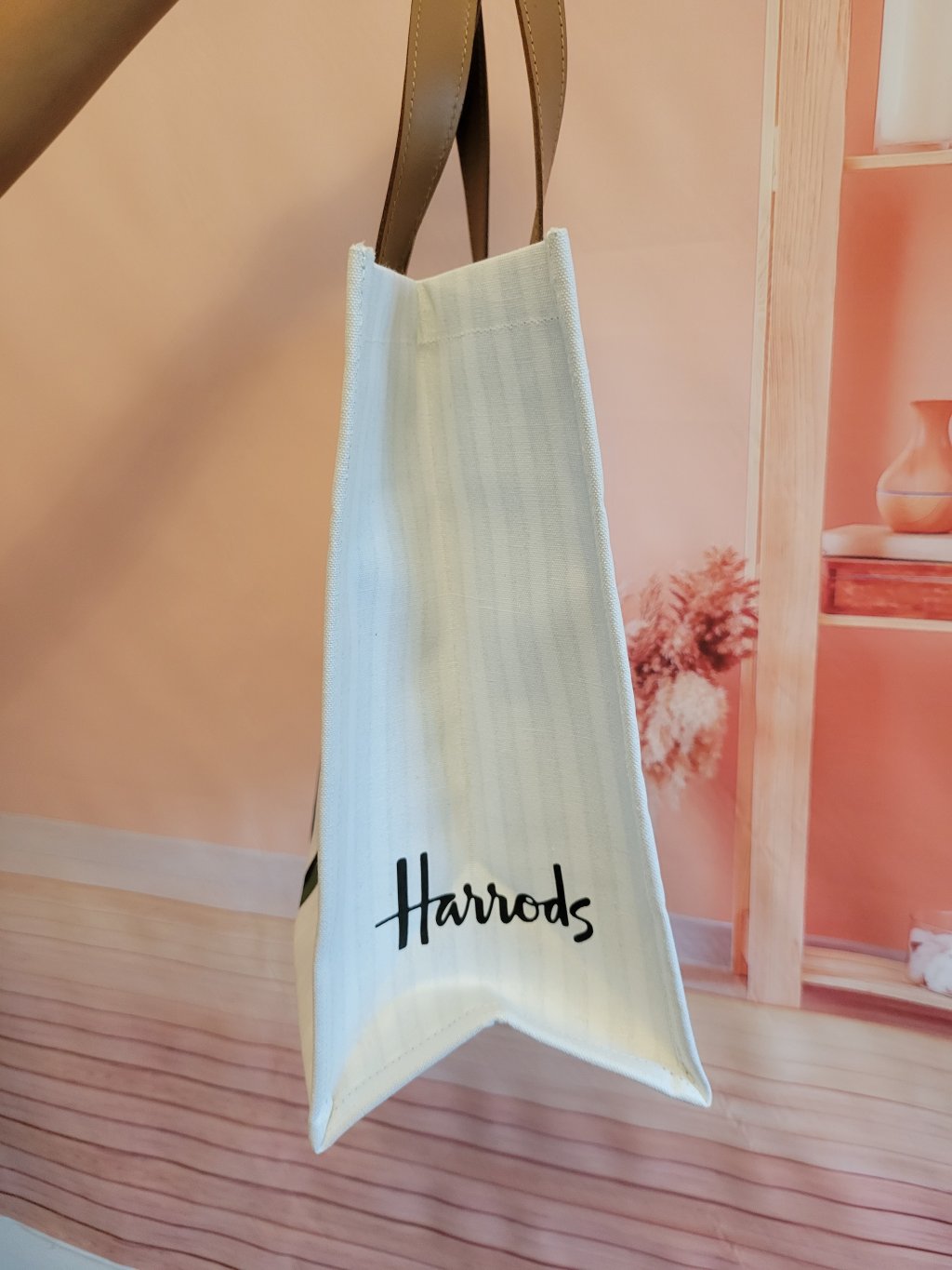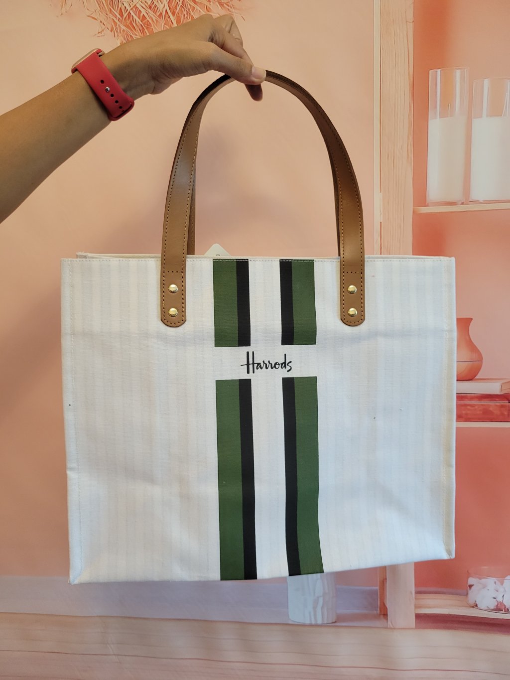 (香港現貨) Harrods Logo Stripe Grocery Shopper Bag 帆布大袋