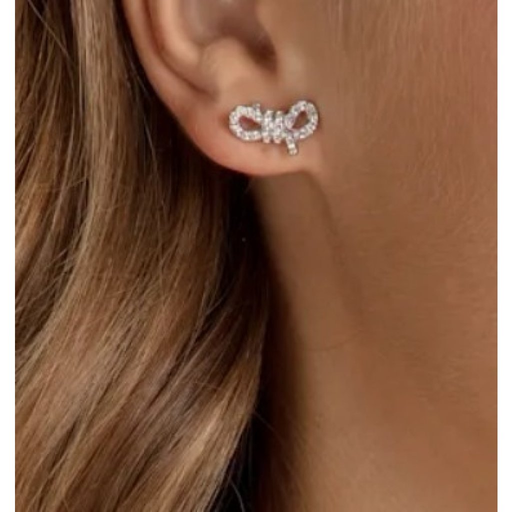 (香港現貨) Swarovski Bow 蝴蝶結耳環 (銀 Silver)