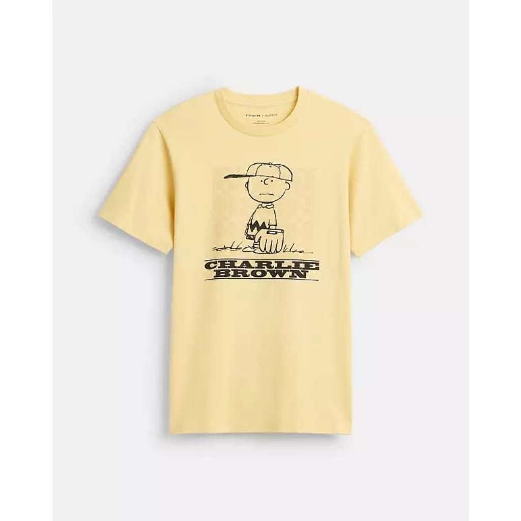 Coach X Peanuts Snoopy Signature Square T Shirt In Organic Cotton 男裝 Tee (黃 Yellow)