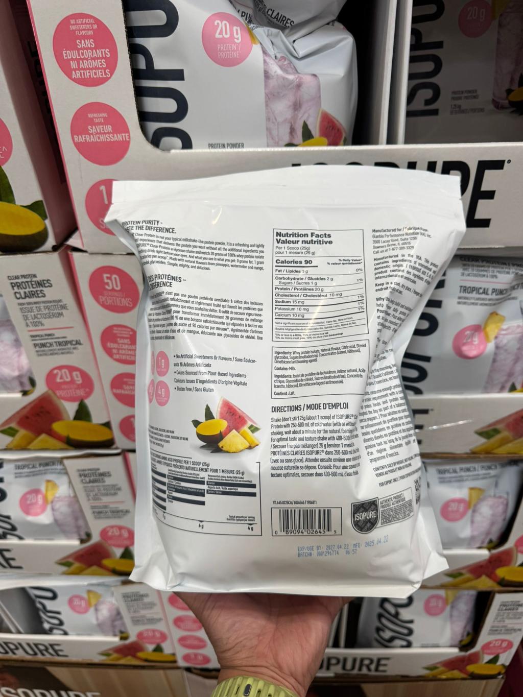ISOPURE Clear Protein 並不是你典型的奶昔狀蛋白粉。它是一種清新而微微帶有水果風味的體驗,提供你所需的蛋白質,而不需要額外的成分。給 ISOPURE Clear Carb Protein 來一次猛烈的搖晃,看看 20 克 100% 乳清蛋白分離物如何在你眼前混合成一杯清爽的飲料。而你所看到的就是你所得到的:每勺 0 克脂肪、1 克糖和 90 卡路里。使用來自菠蘿、西瓜和芒果的天然風味,並以甜菊糖苷進行甜化。簡單、強大、美味。