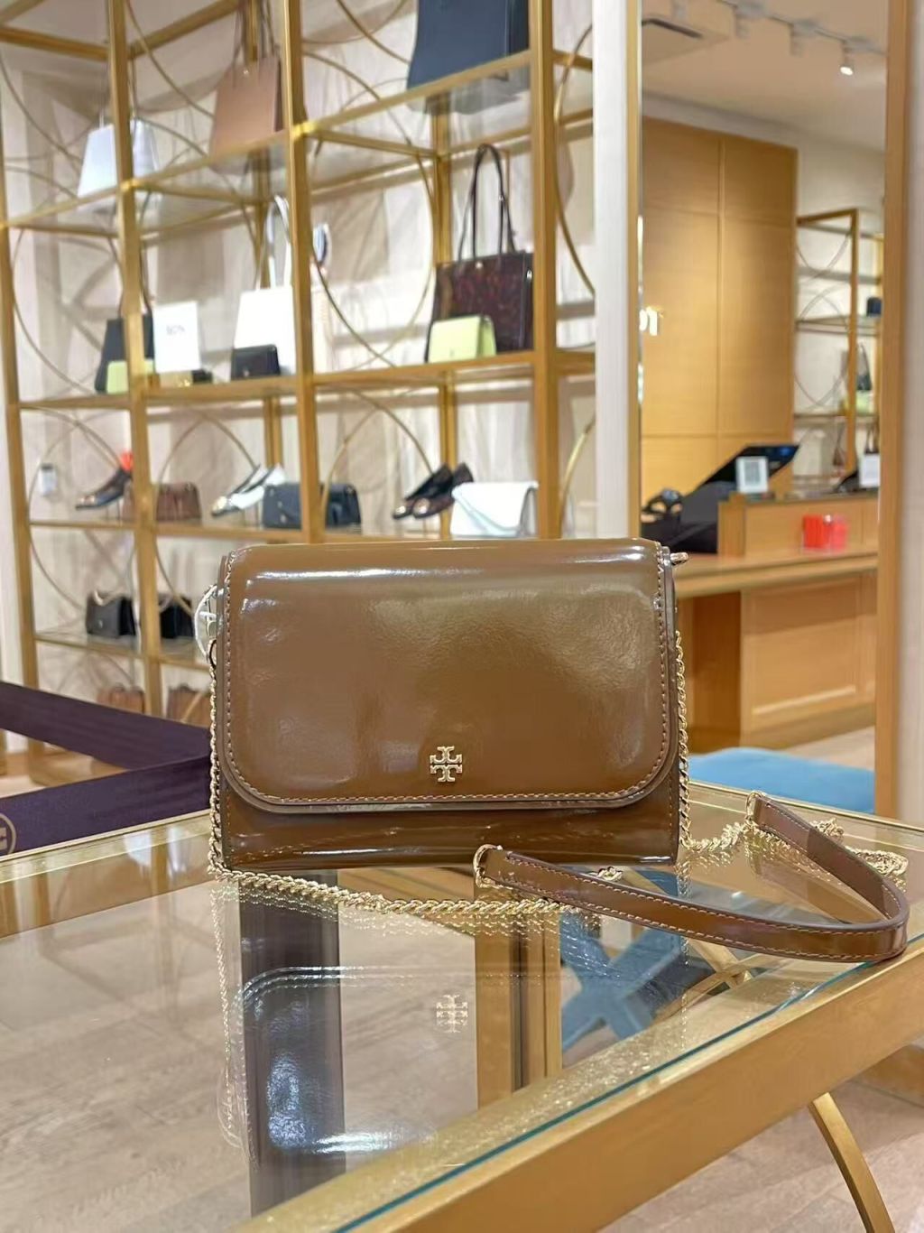 ⭐Door Buster⭐ Tory burch Emerson chain wallet WOC (漆皮黑 Brown)