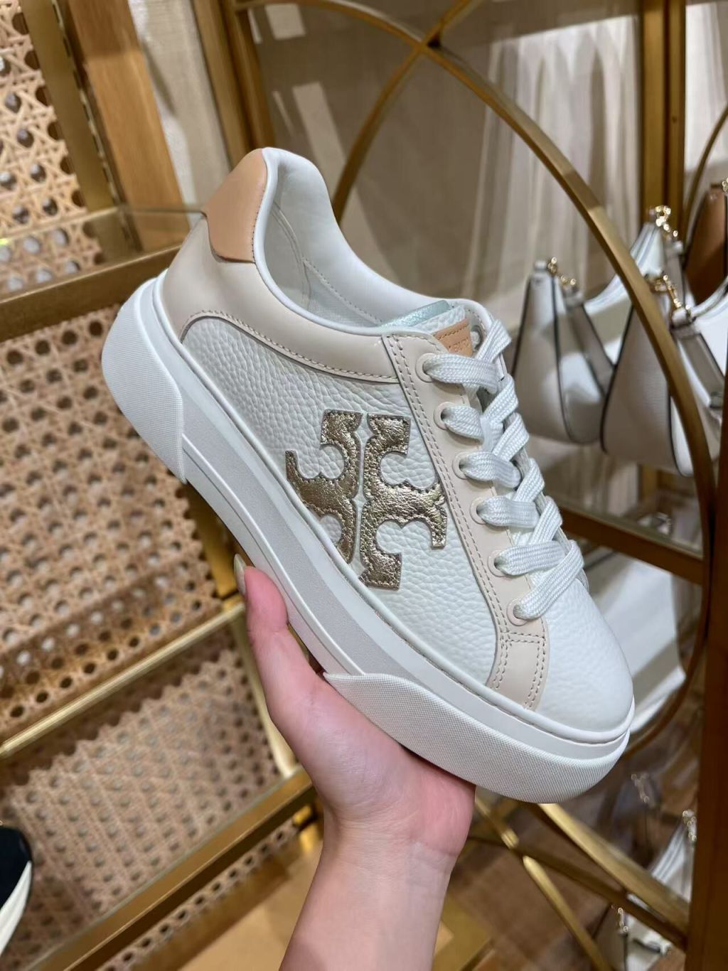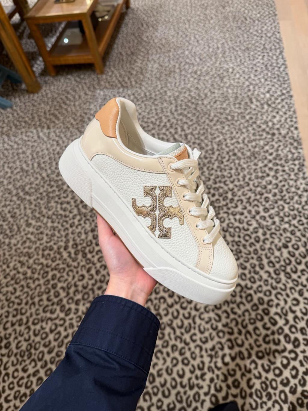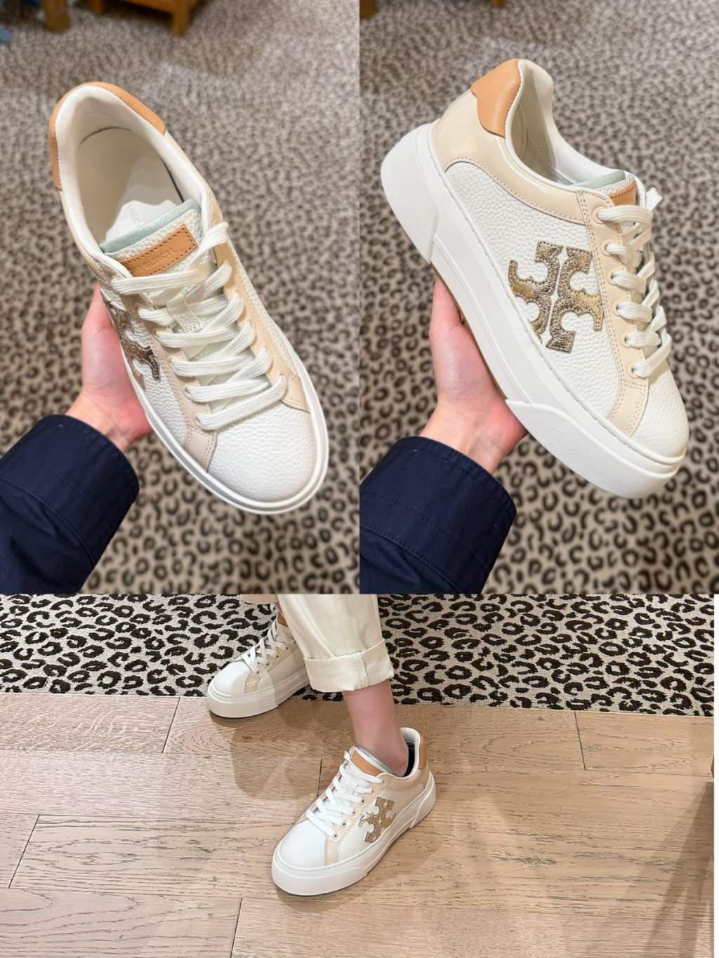 Tory Burch Colorblock platform sneakers 4cm (White x Milk Tea Logo)
