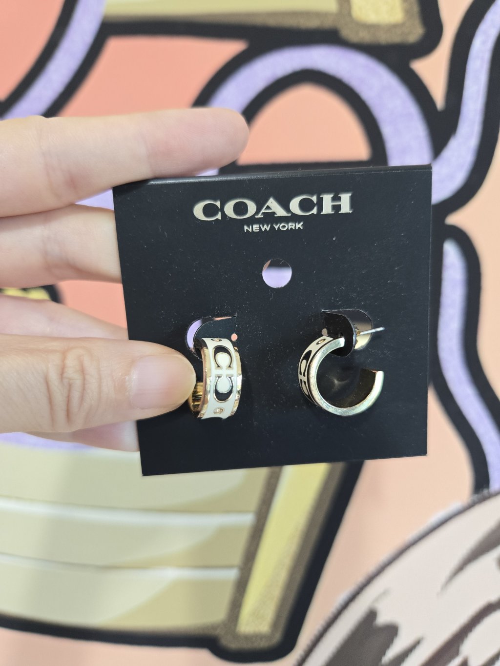 (香港現貨) Coach Signature Enamel Huggie Earrings 搪瓷耳環 (白 White)