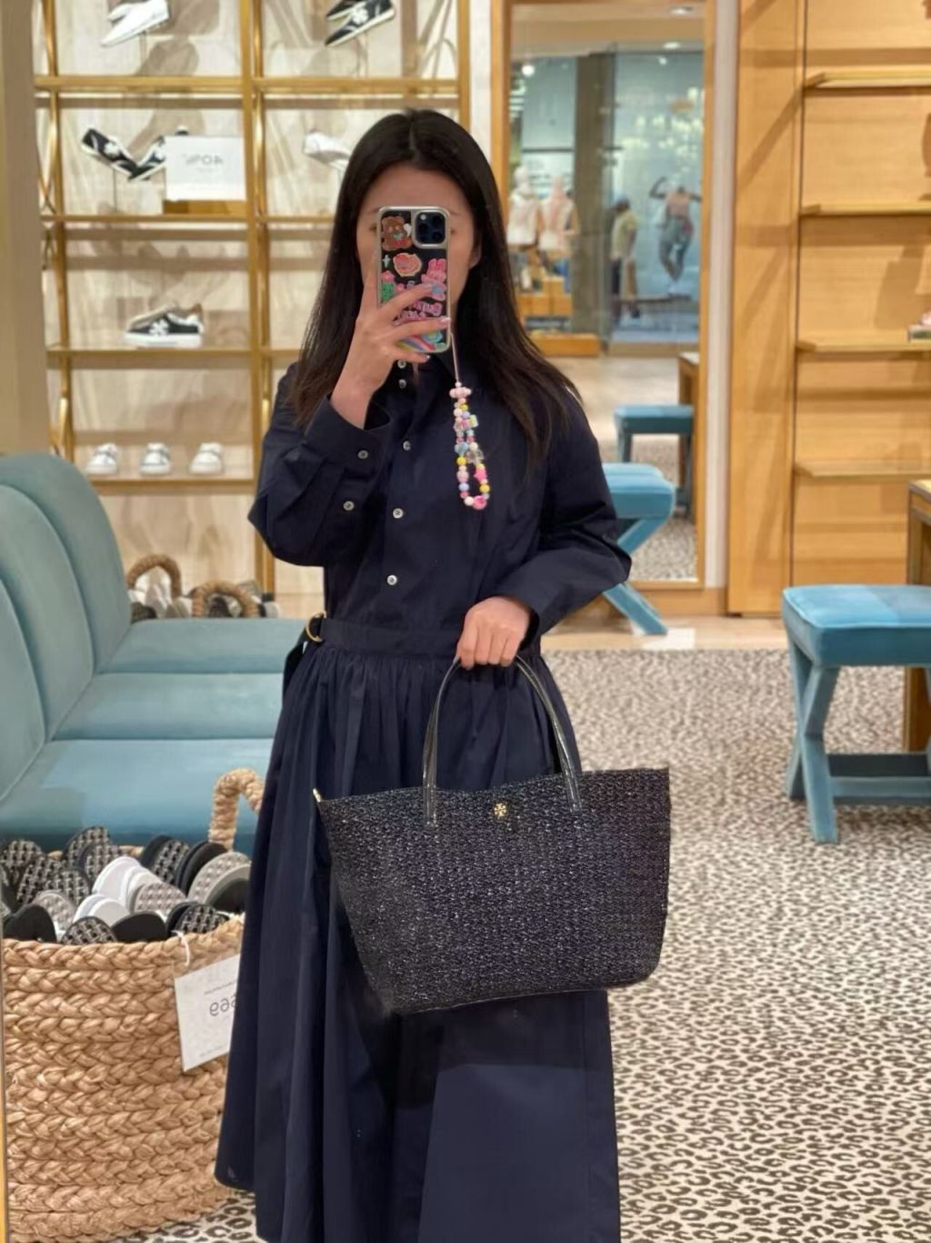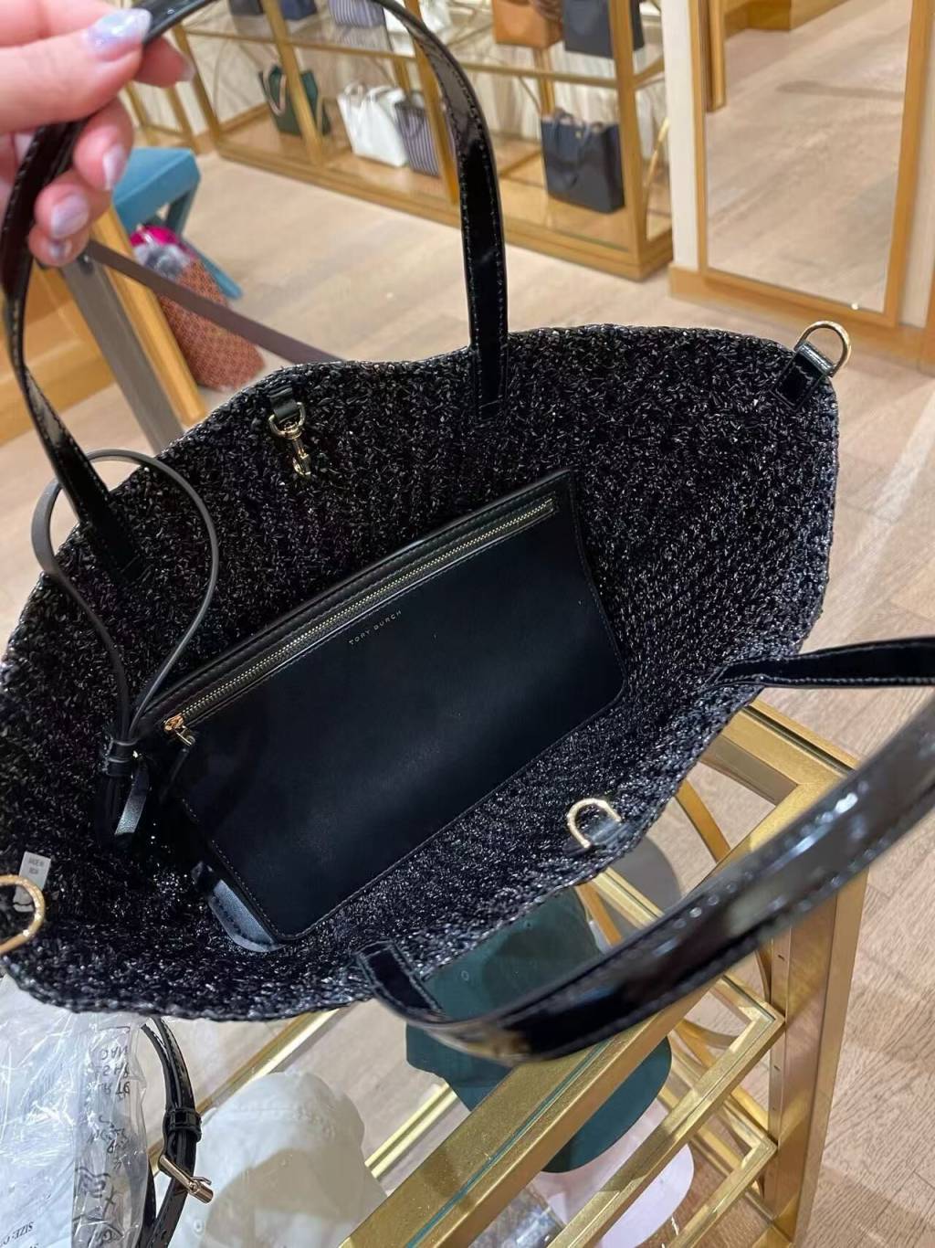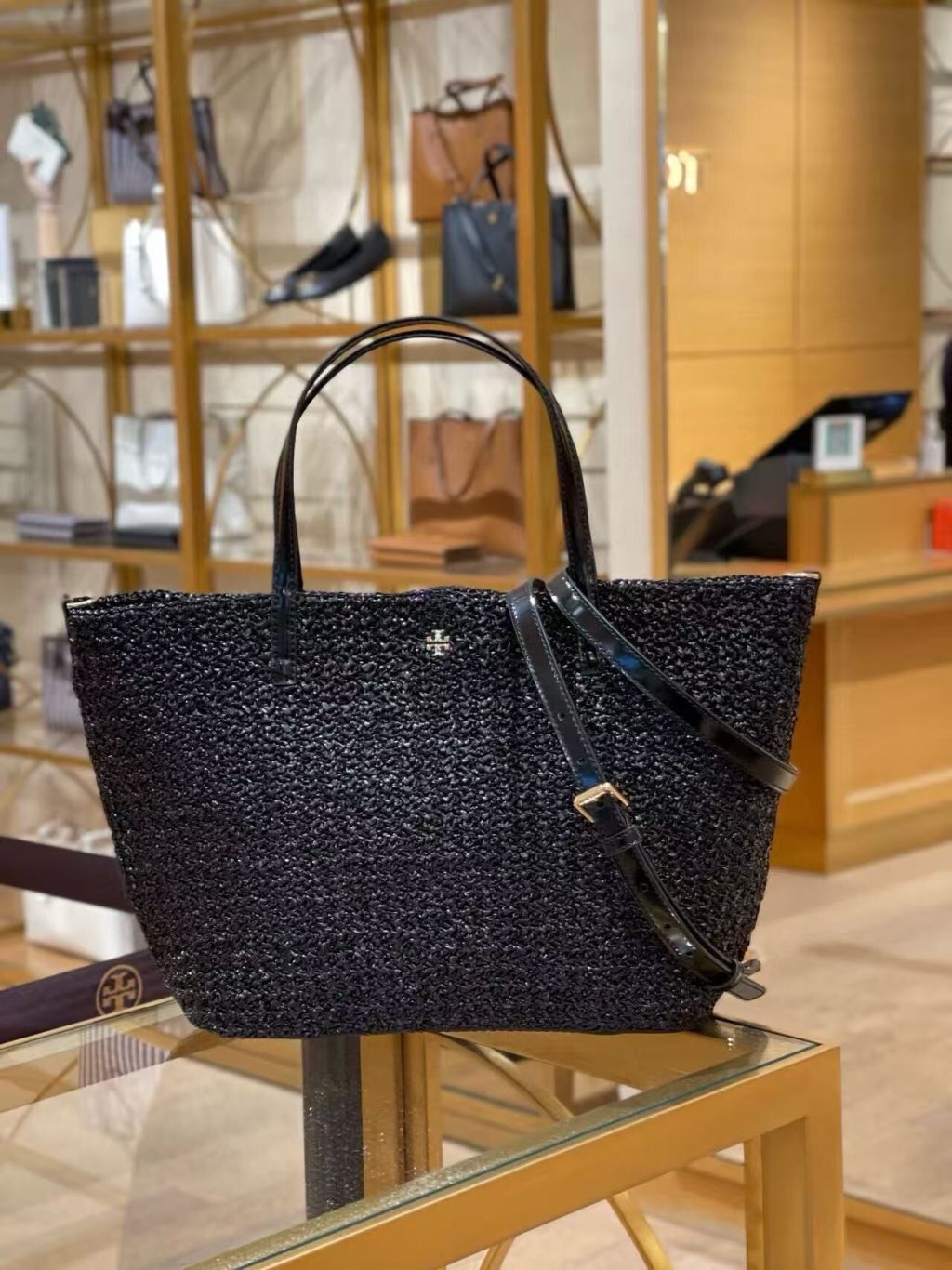 🈹️清貨 Tory Burch Emerson Lacquered Raffia Tote (漆面棕櫚纖維) 黑 Black