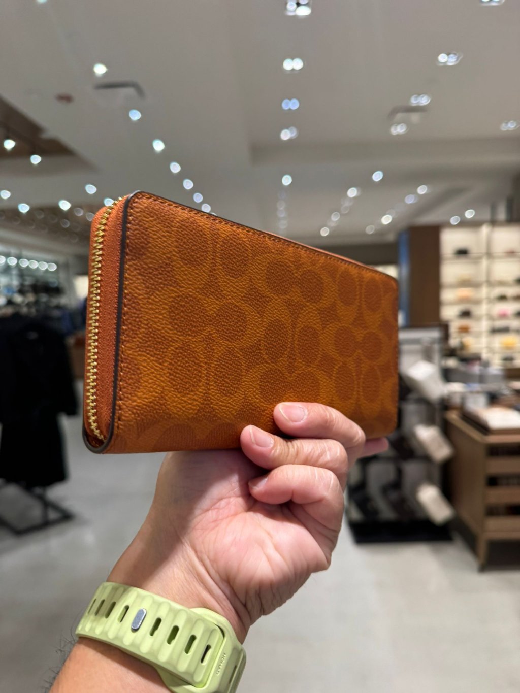 主頁 Coach 拉鏈長銀包 (滿版深橙 Bright Canyon)