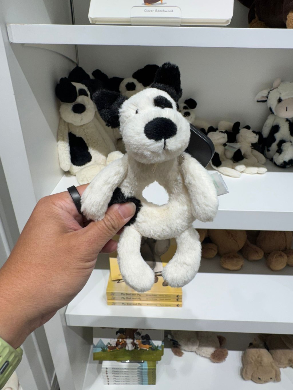主頁 Jellycat Bashful Black & Cream Puppy Ring Rattle 黑白小狗手搖鈴