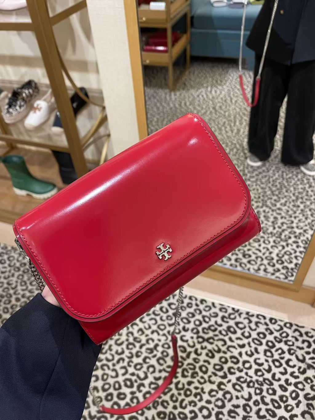 🈹️清貨 Tory burch Emerson chain wallet WOC (漆皮紅 Red)