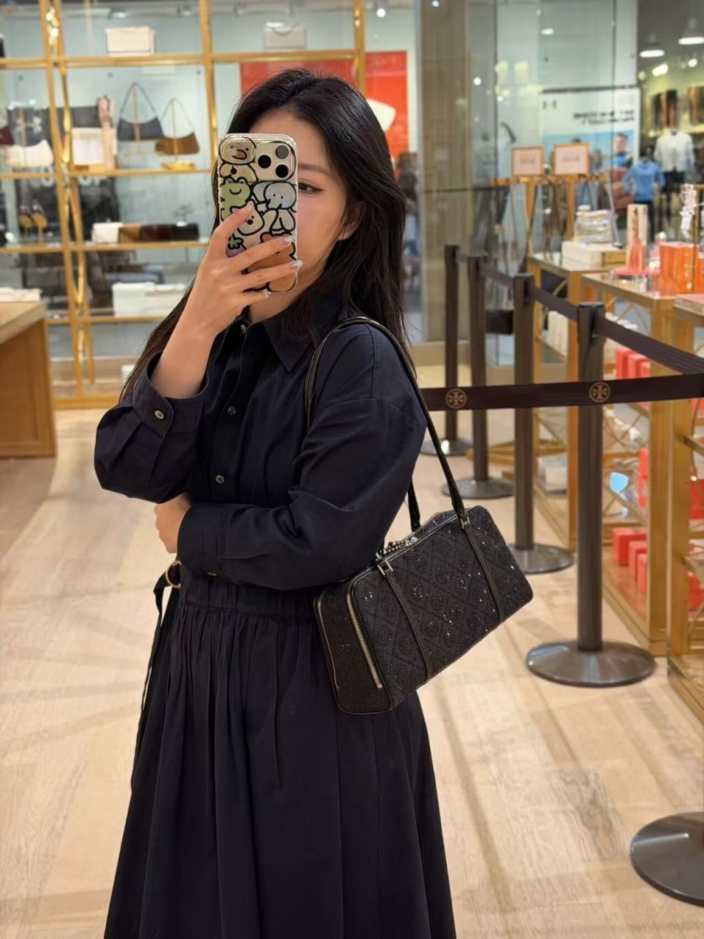 主頁 (專門店) Tory Burch T Monogram Hotfix small Marshmallow Satchel 豆腐肩包 (黑 Black)