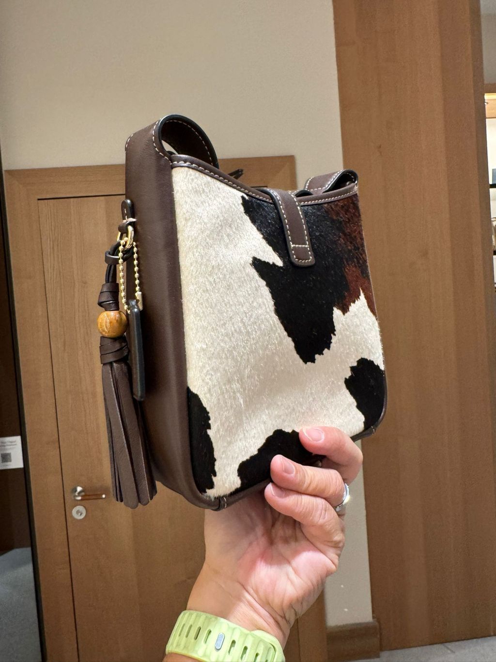 Coach Hadley Mini Crossbody Bag With Cow Print And Tassel (牛牛毛 Cow)