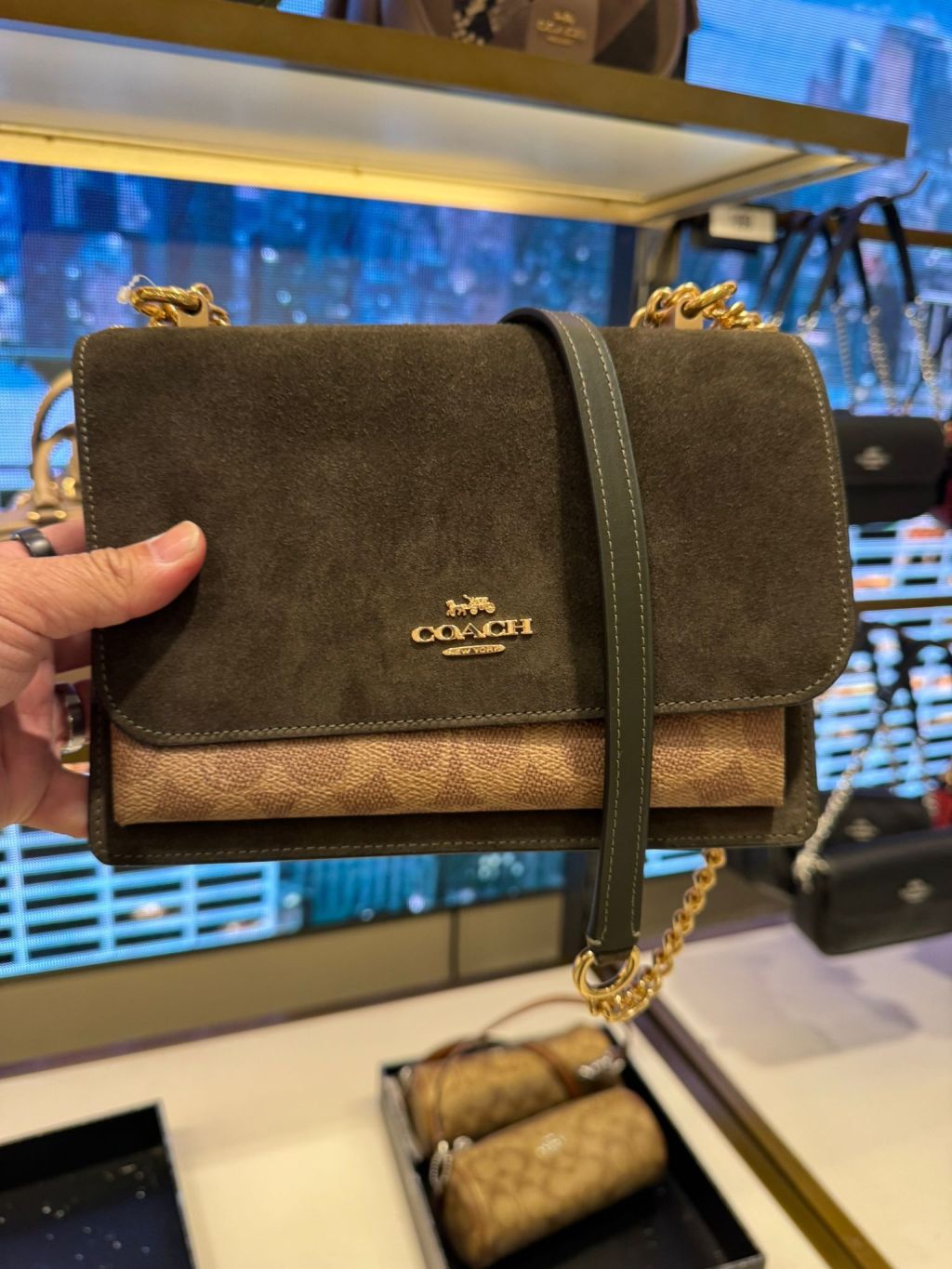 Coach 麂皮風琴包 Klare Crossbody Bag (Army Green/Tan)