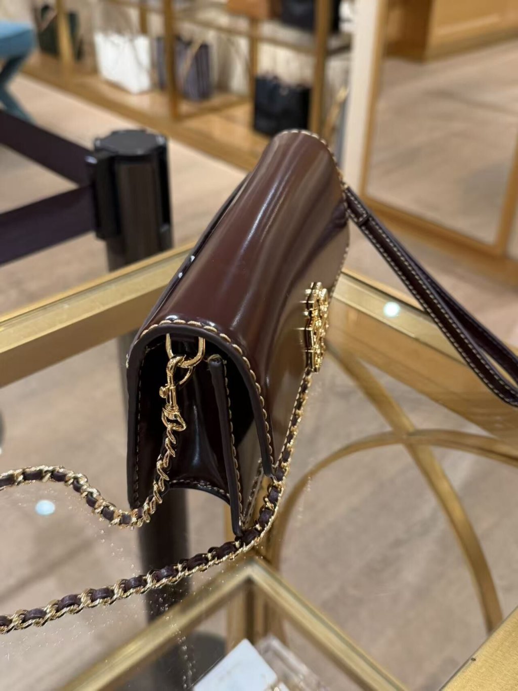 ⭐Door Buster⭐ Tory Burch Britten chain wallet wristlet (WOC) (漆皮啡 Brown)