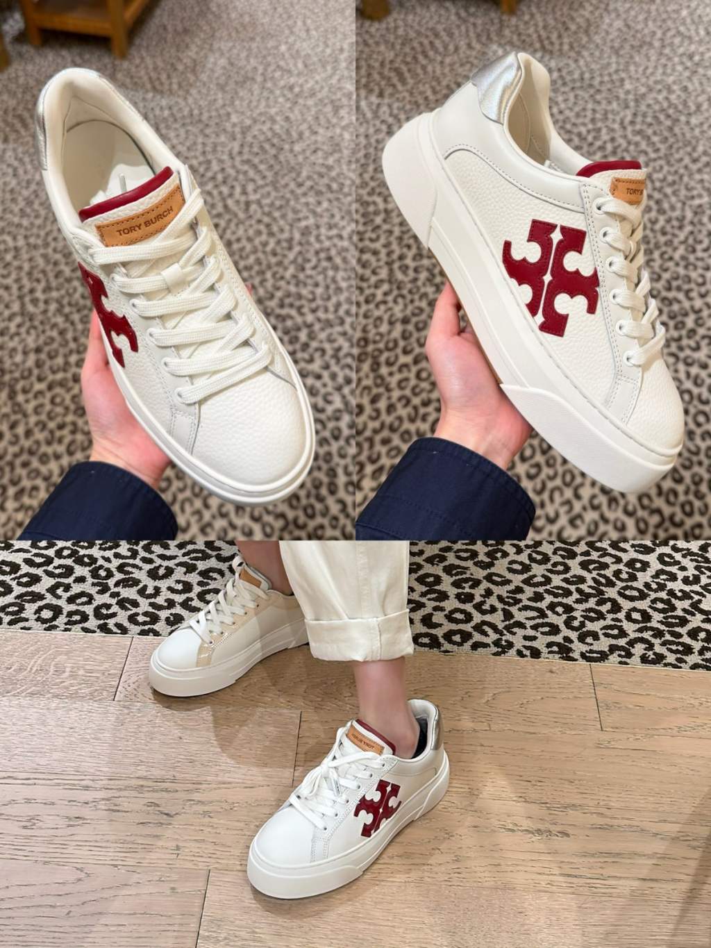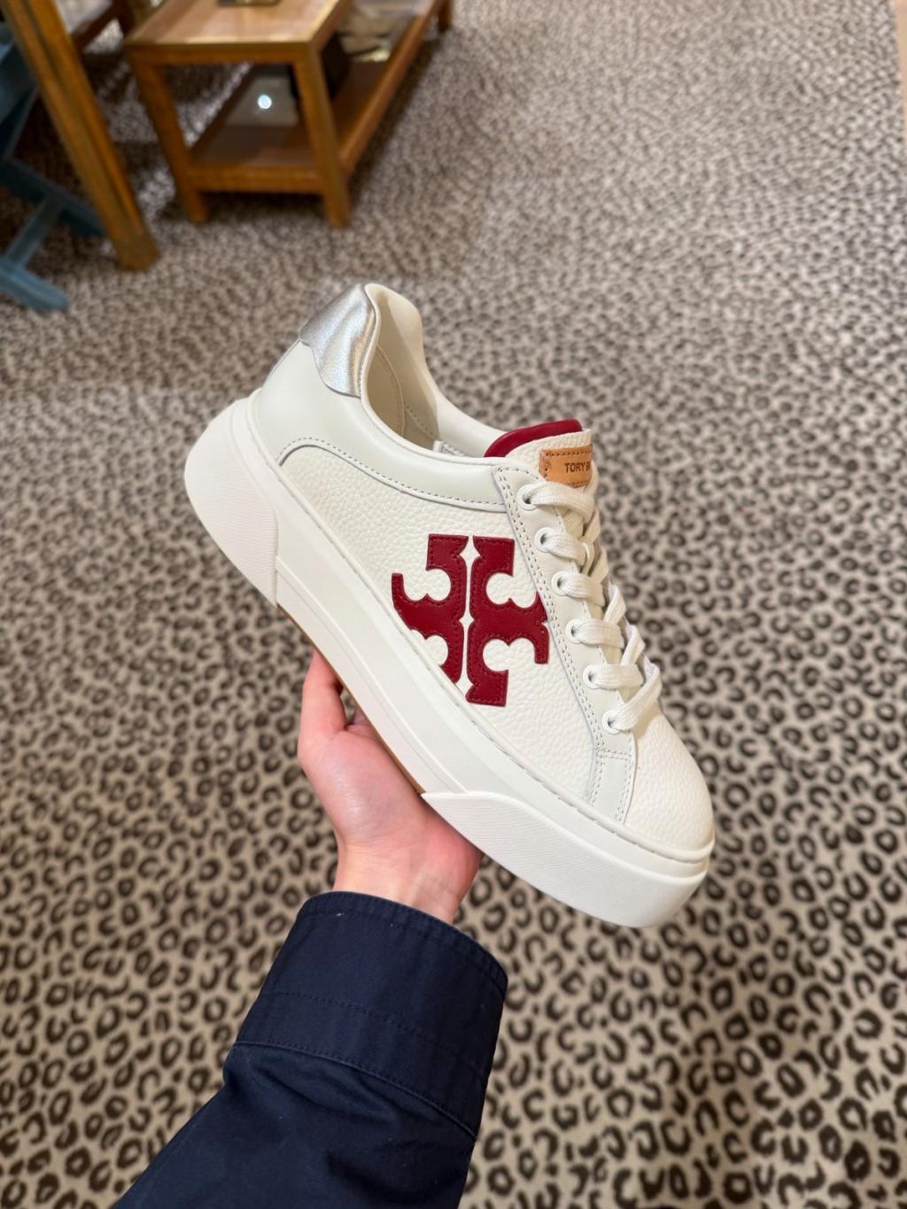 Tory Burch Colorblock platform sneakers 4cm (White x Red Logo)
