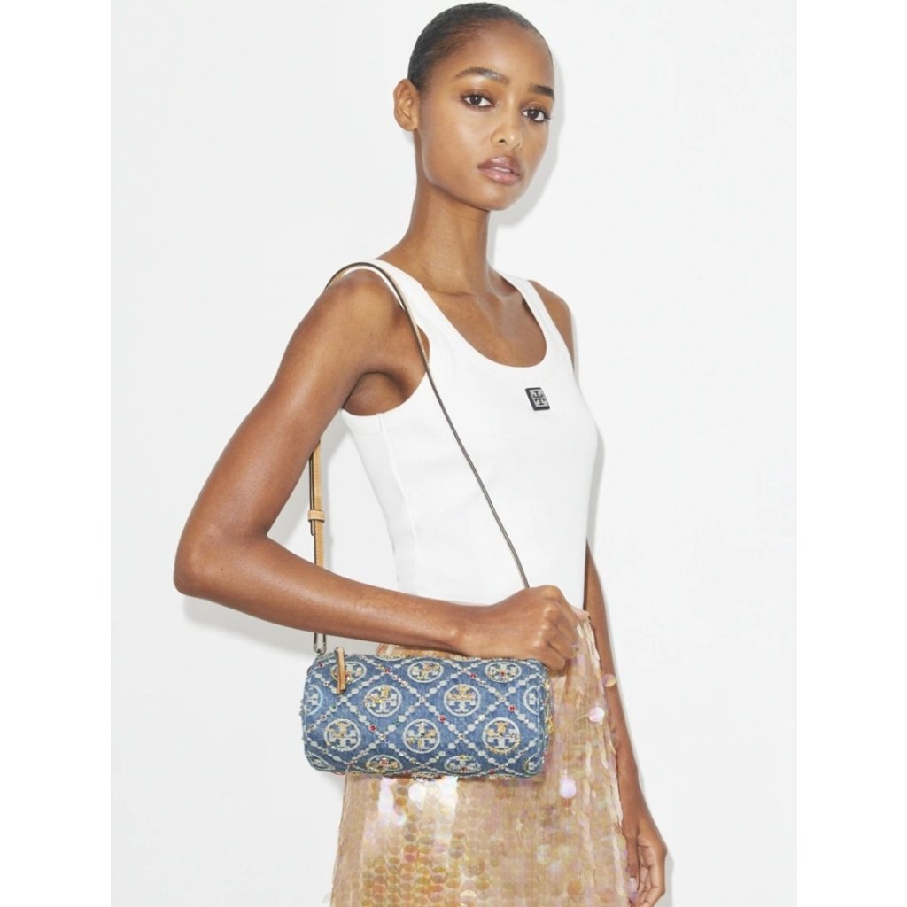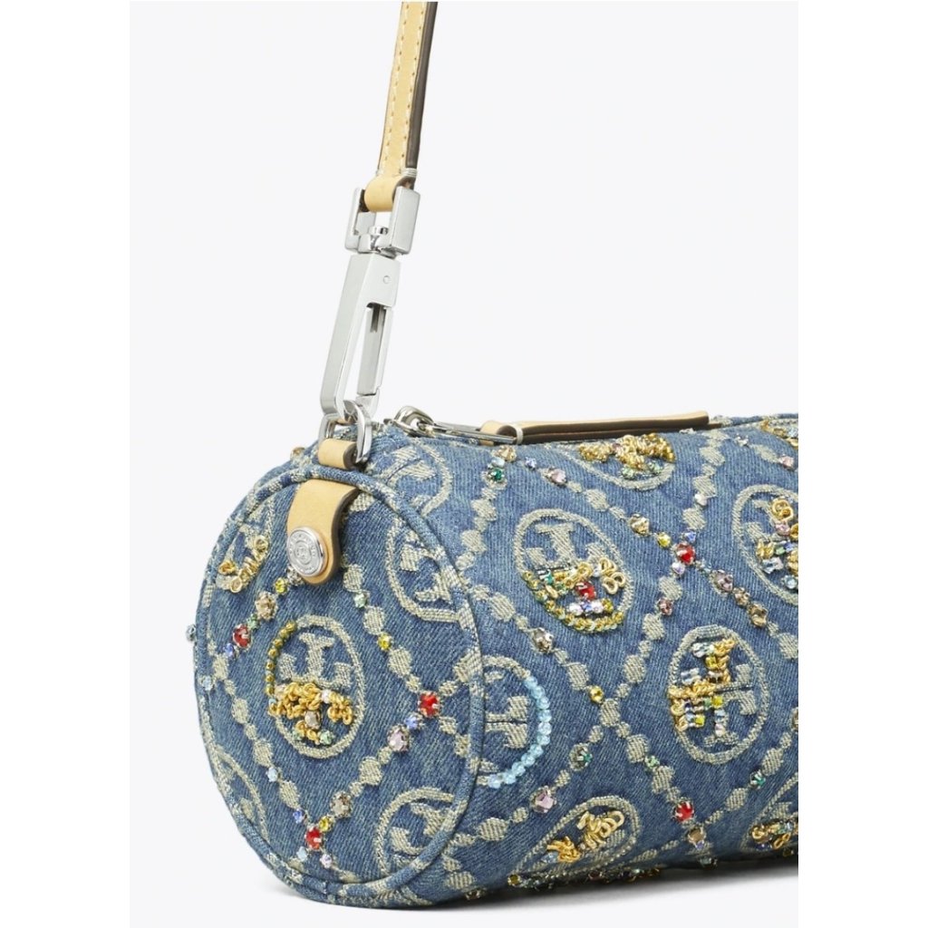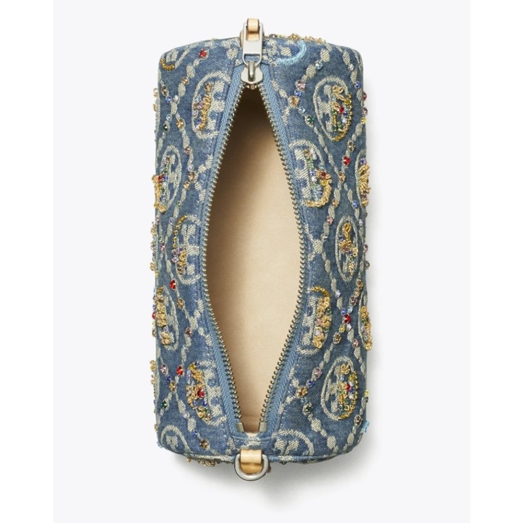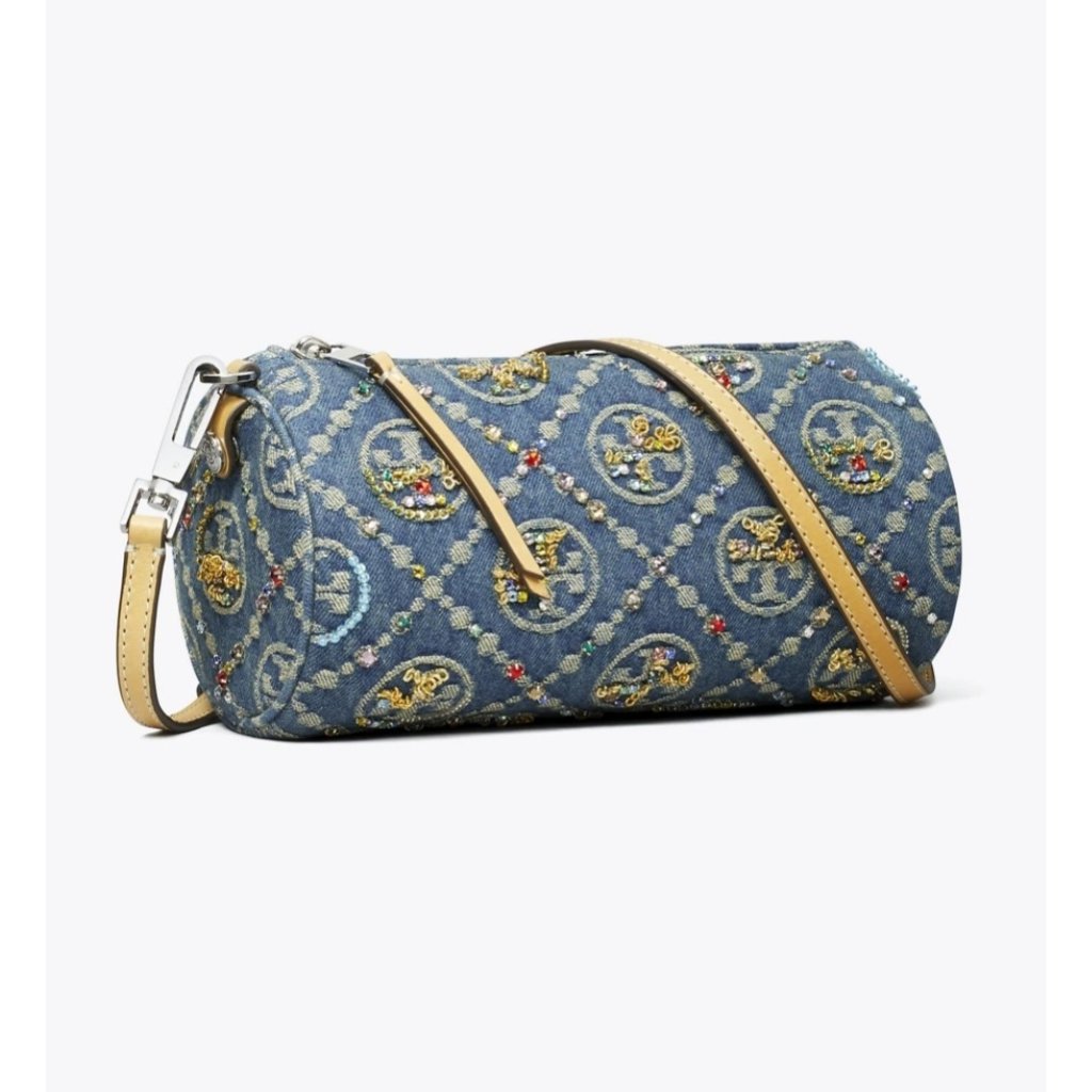 Tory Burch T Monogram Denim Embellished Cylinder Bag 牛仔釘珠片圓桶包