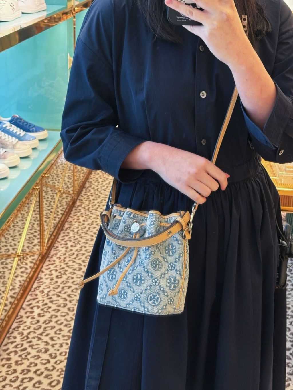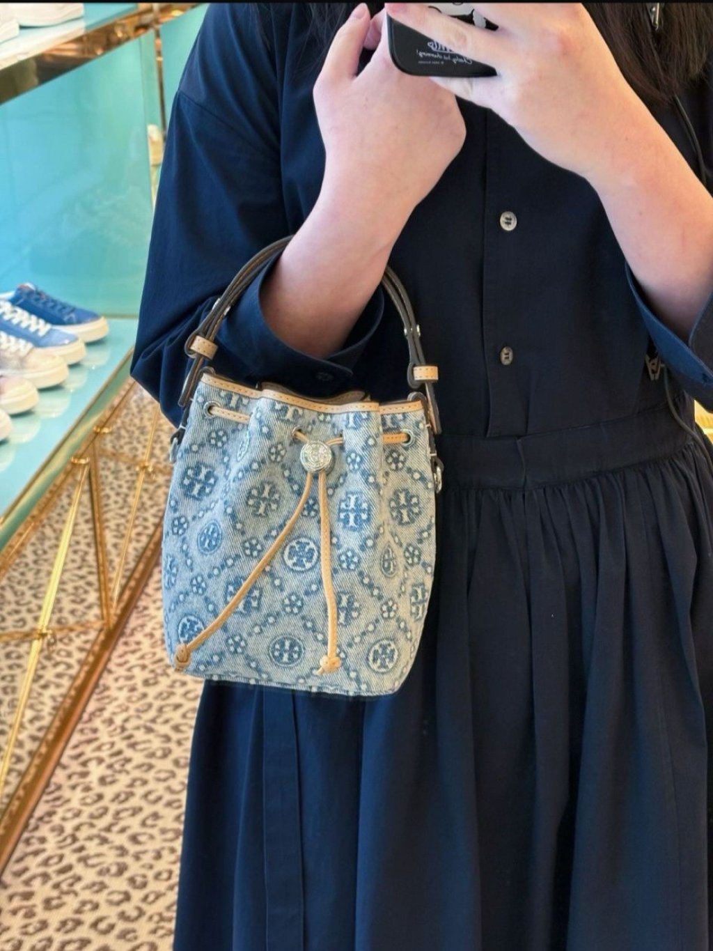 Tory Burch 專門店 T monogram 小水桶包 (牛仔布)