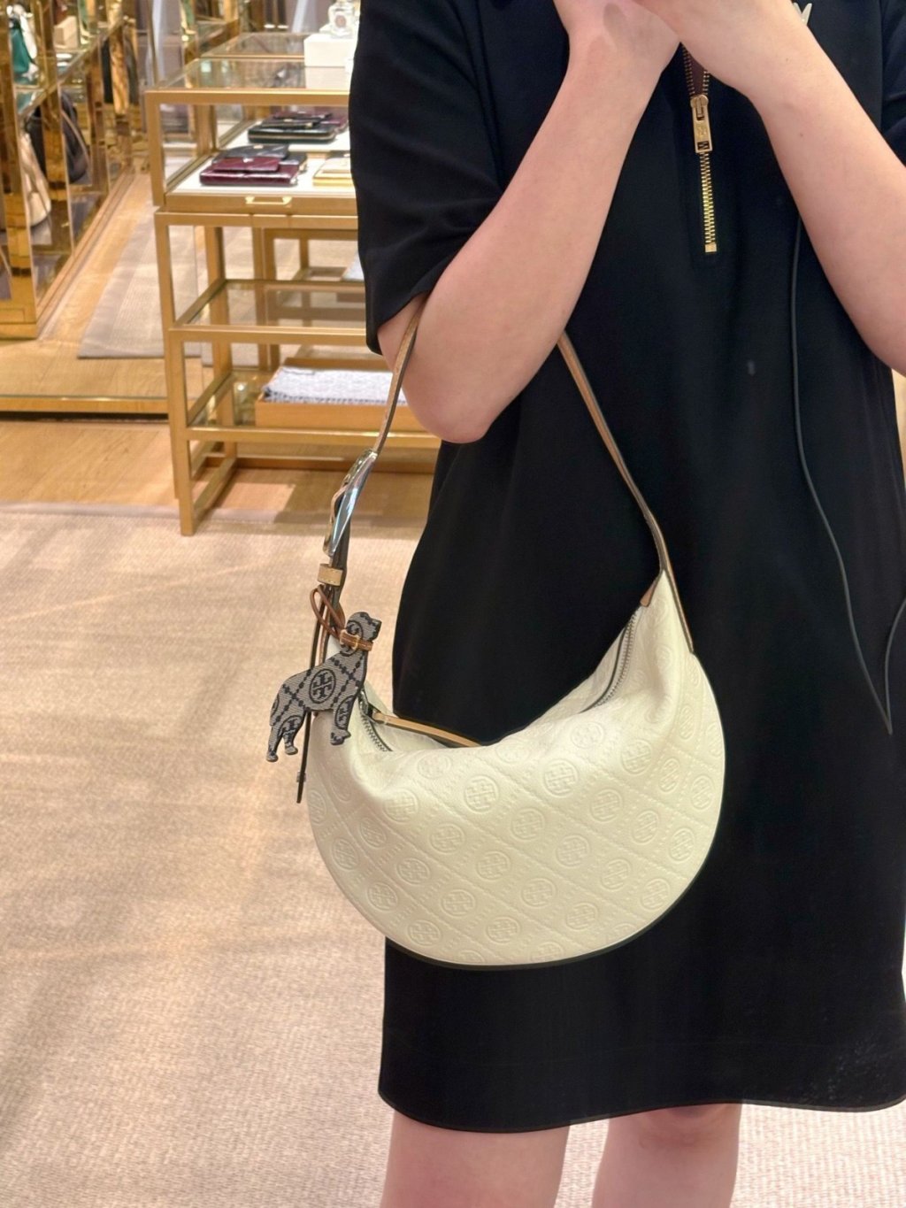 Tory Burch T Monogram Pebble Small Balloon Bag (Warm White)