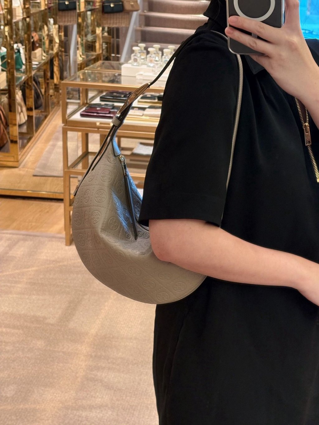 Tory Burch T Monogram Pebble Small Balloon Bag (Grey)