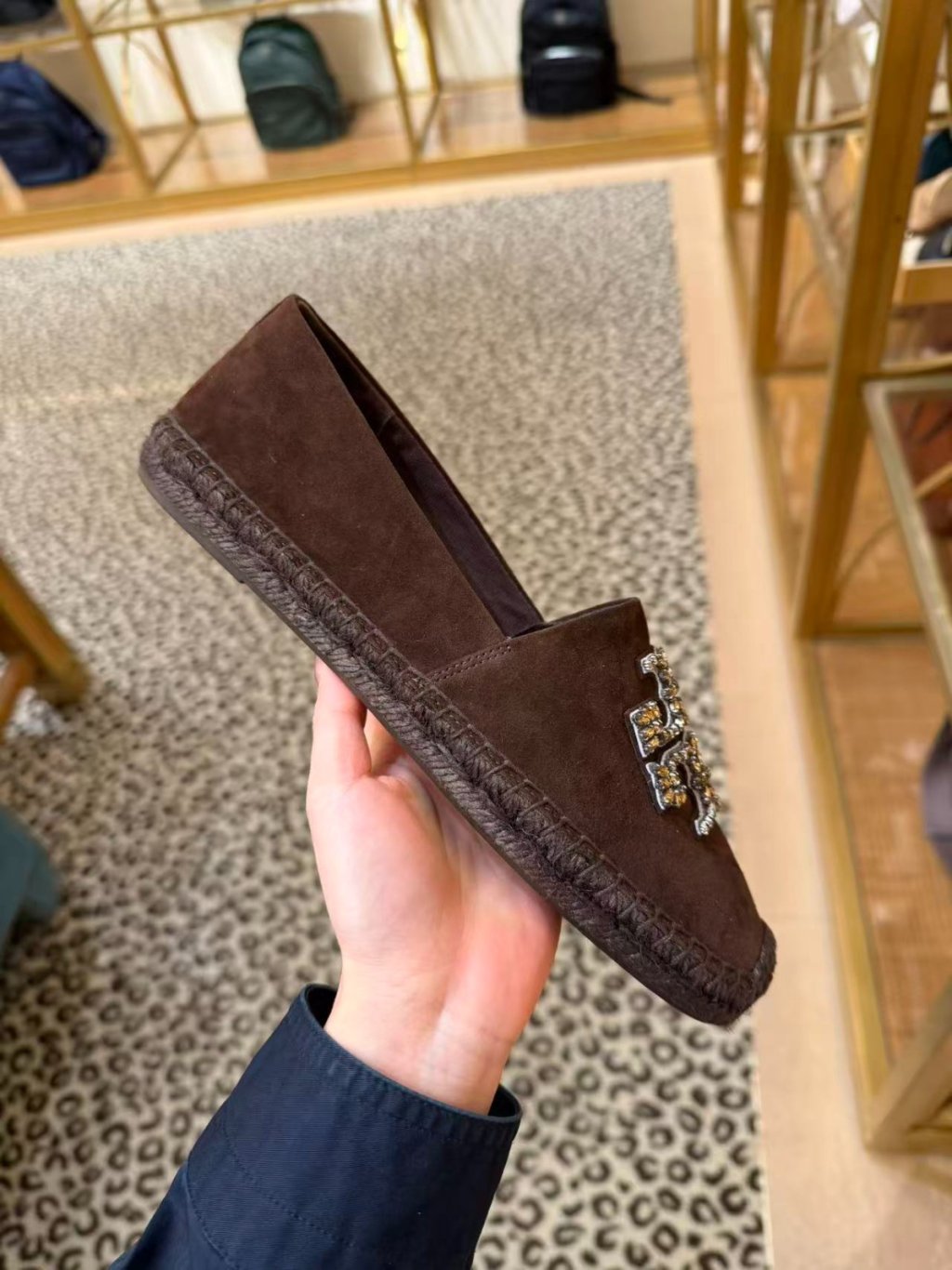 主頁 Tory Burch Embellished espadrilles 真皮閃石草鞋 (深啡 Dark Brown)