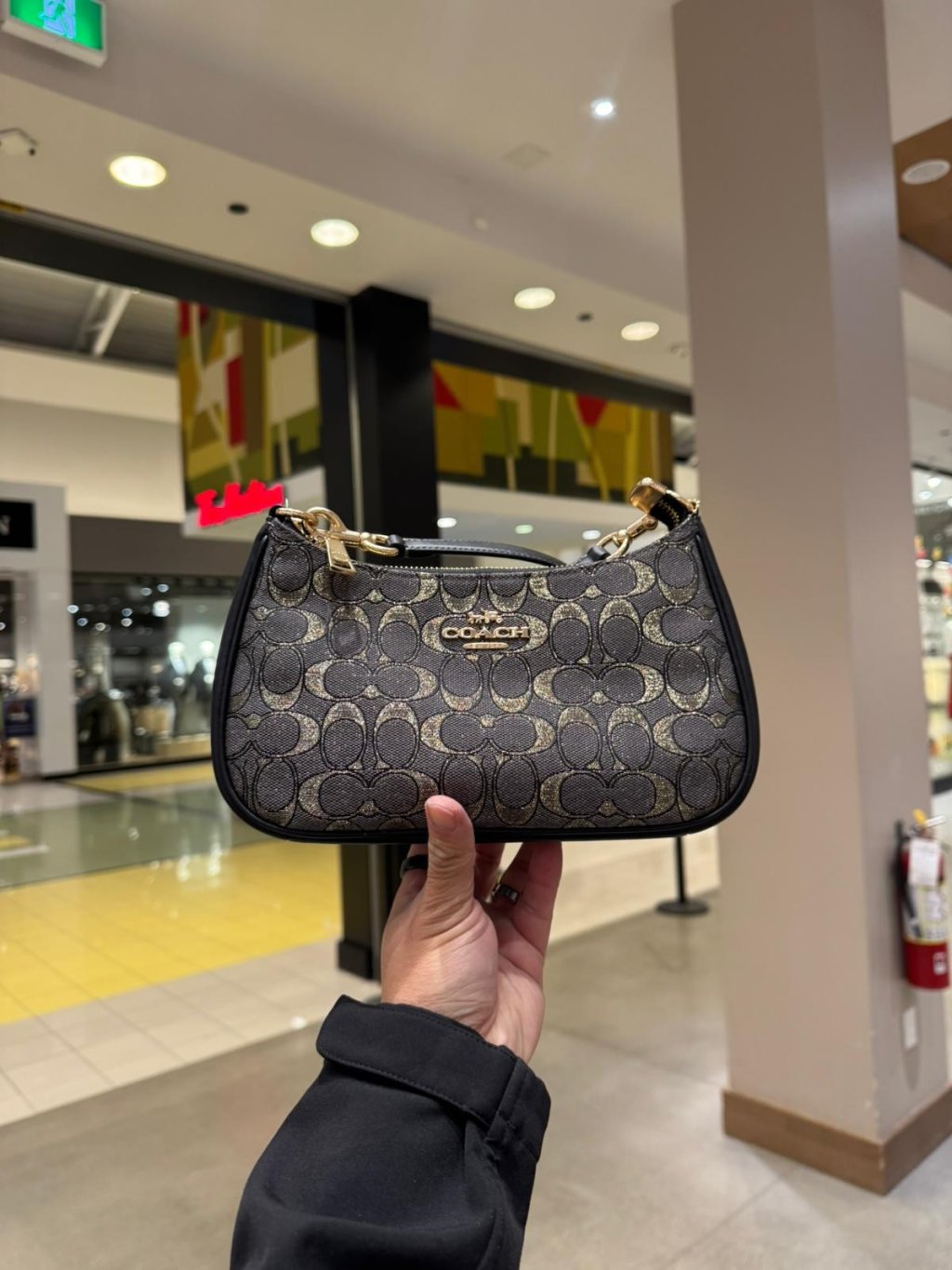 主頁 Coach Teri Shoulder Bag 布面兩用肩包 (炭黑/ 金 Charcoal/Gold)