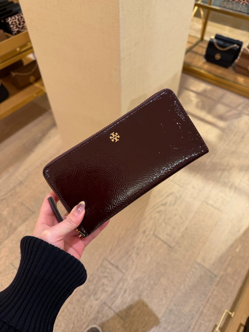 主頁 Tory Burch Emerson 拉鍊長銀包 (附可拆下證件套) 亮面酒紅