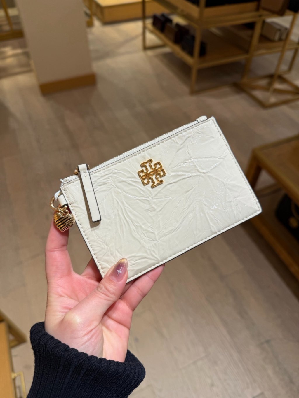 Tory Burch Britten Zip card Case (漆皮摺痕皮奶油白)