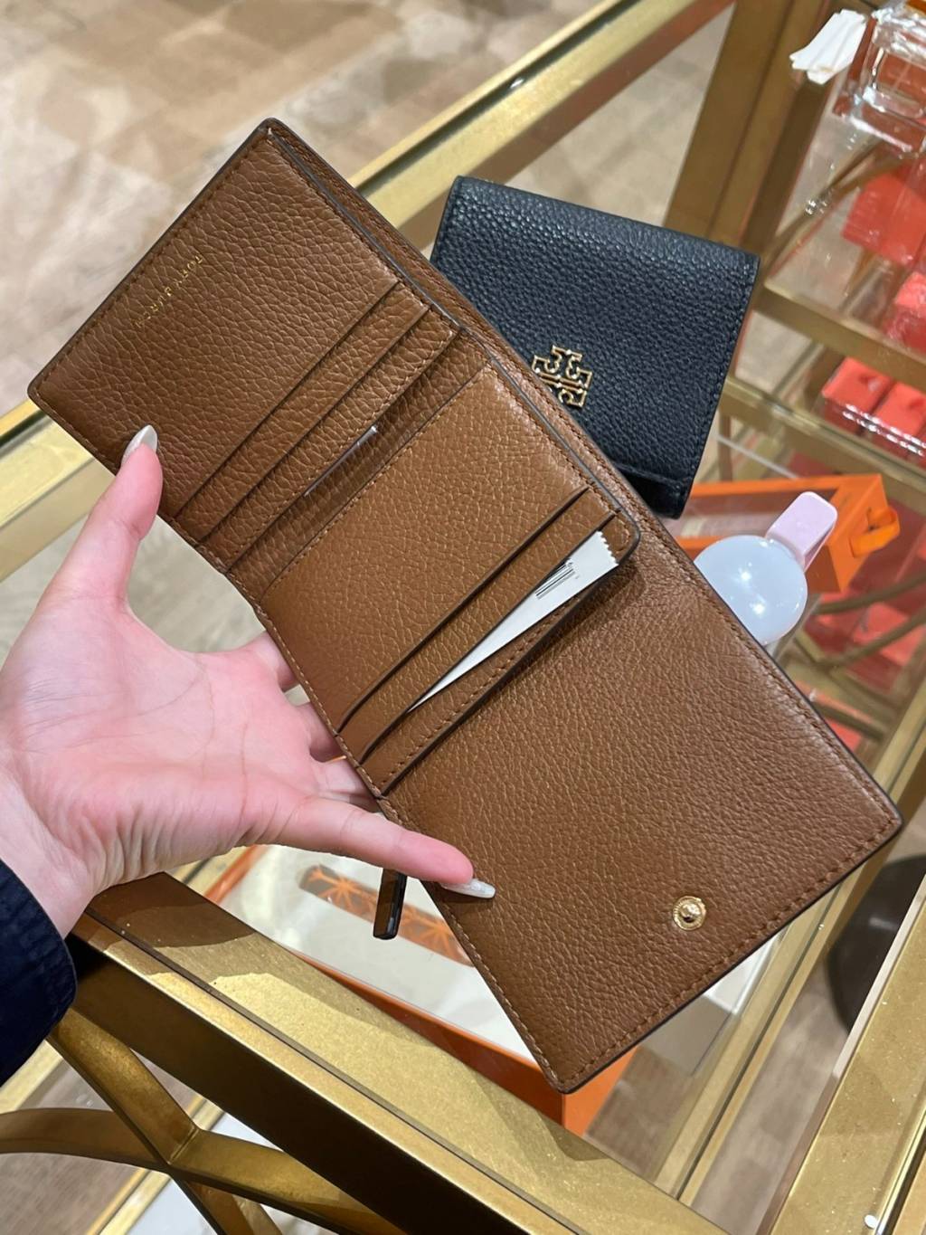 Tory Burch Britten Compact Wallet (Patent Brown)