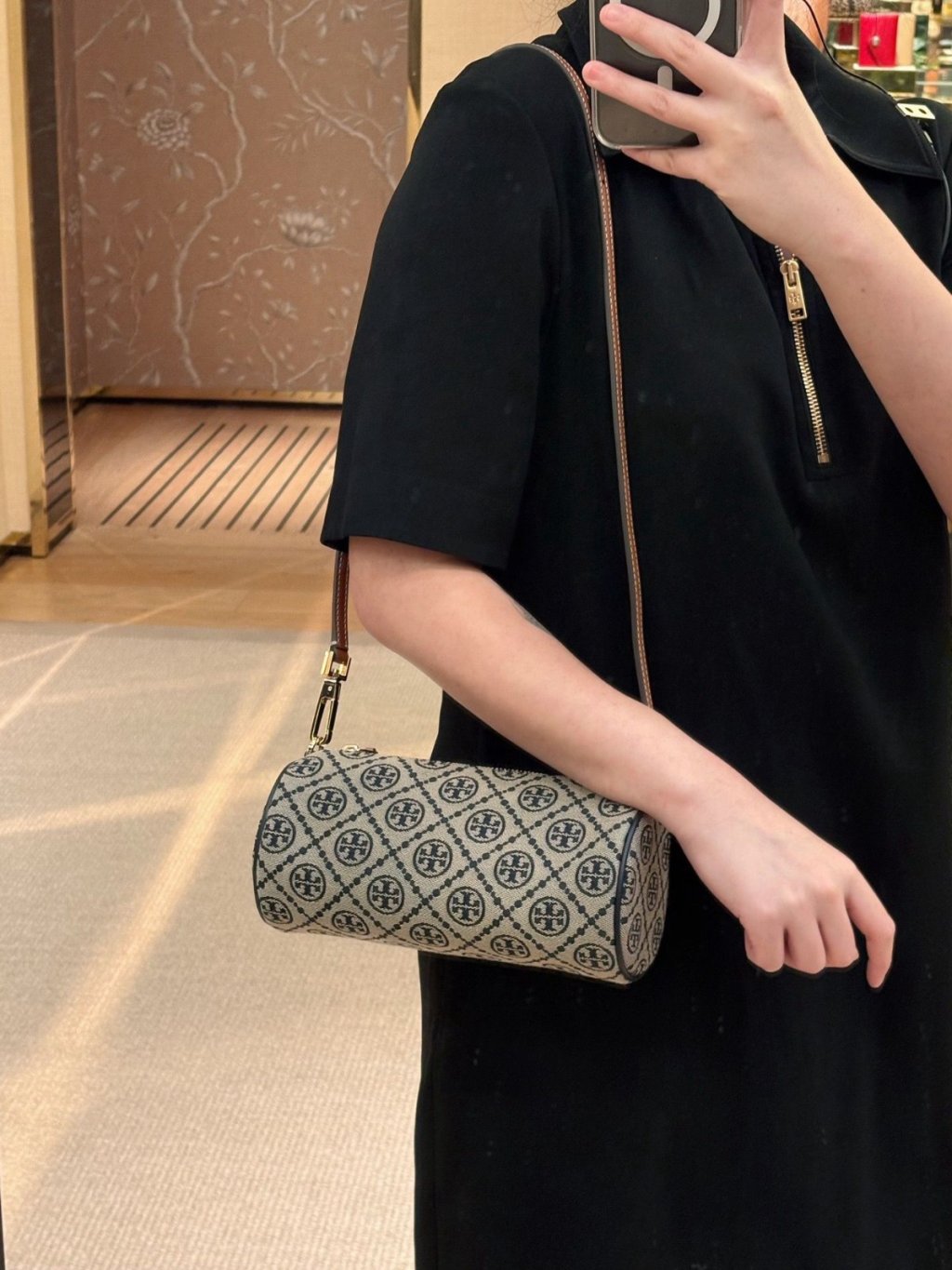 主頁 ⭐ Tory Burch T Monogram T Monogram Cylinder Bag 圓桶包 (深藍 Navy)