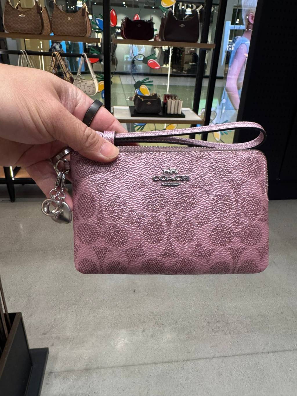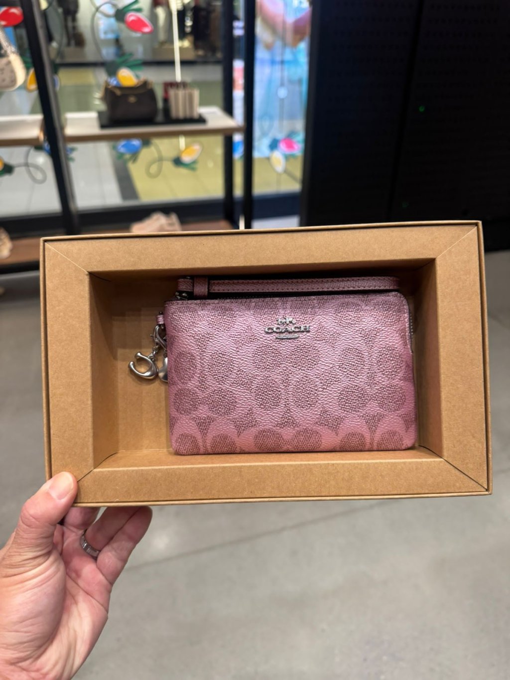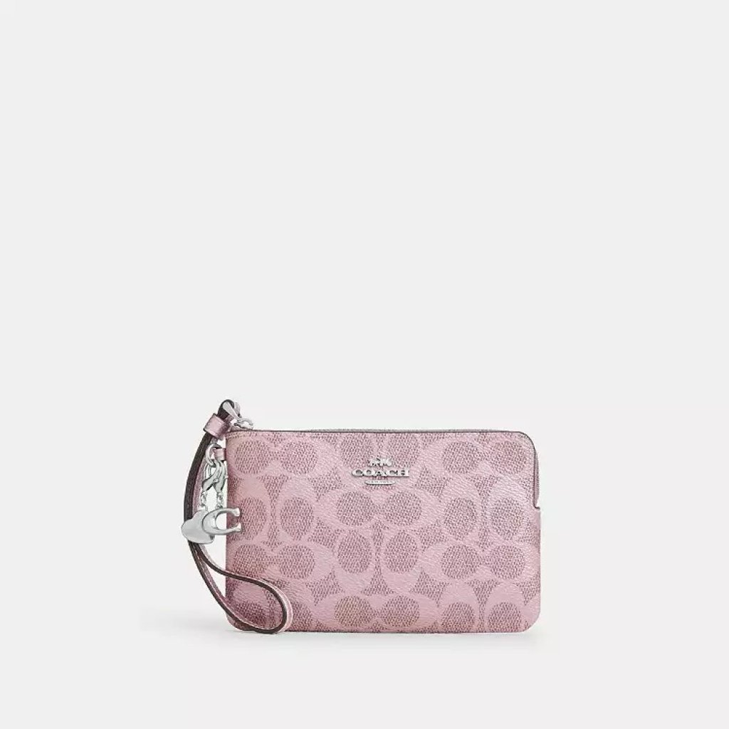 主頁 Coach 細單小手拿禮盒連吊飾 Boxed Corner Zip Wristlet (粉紅 Pink)