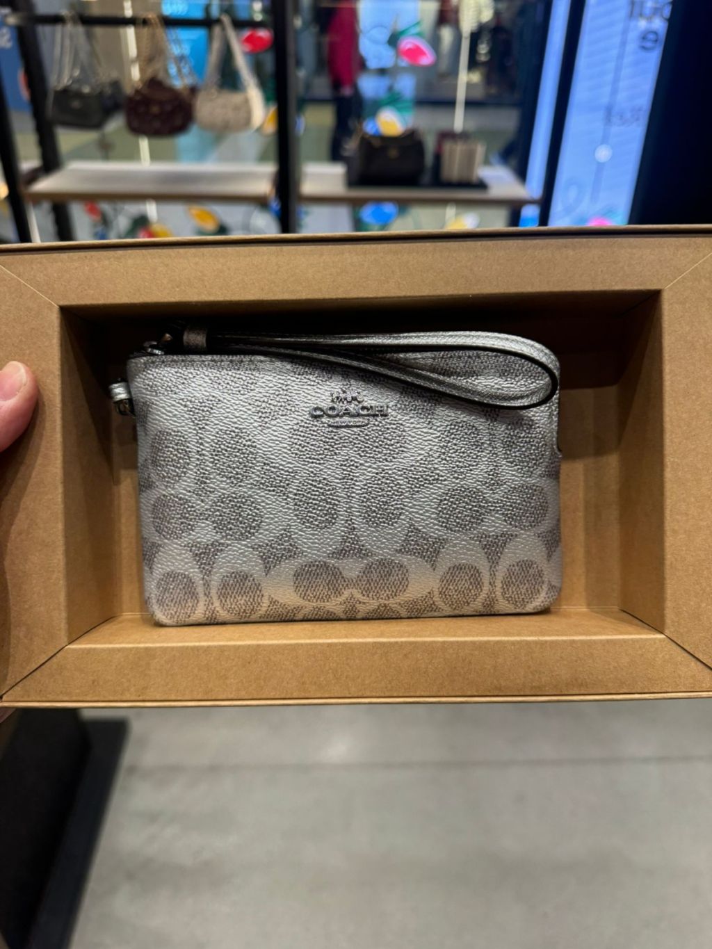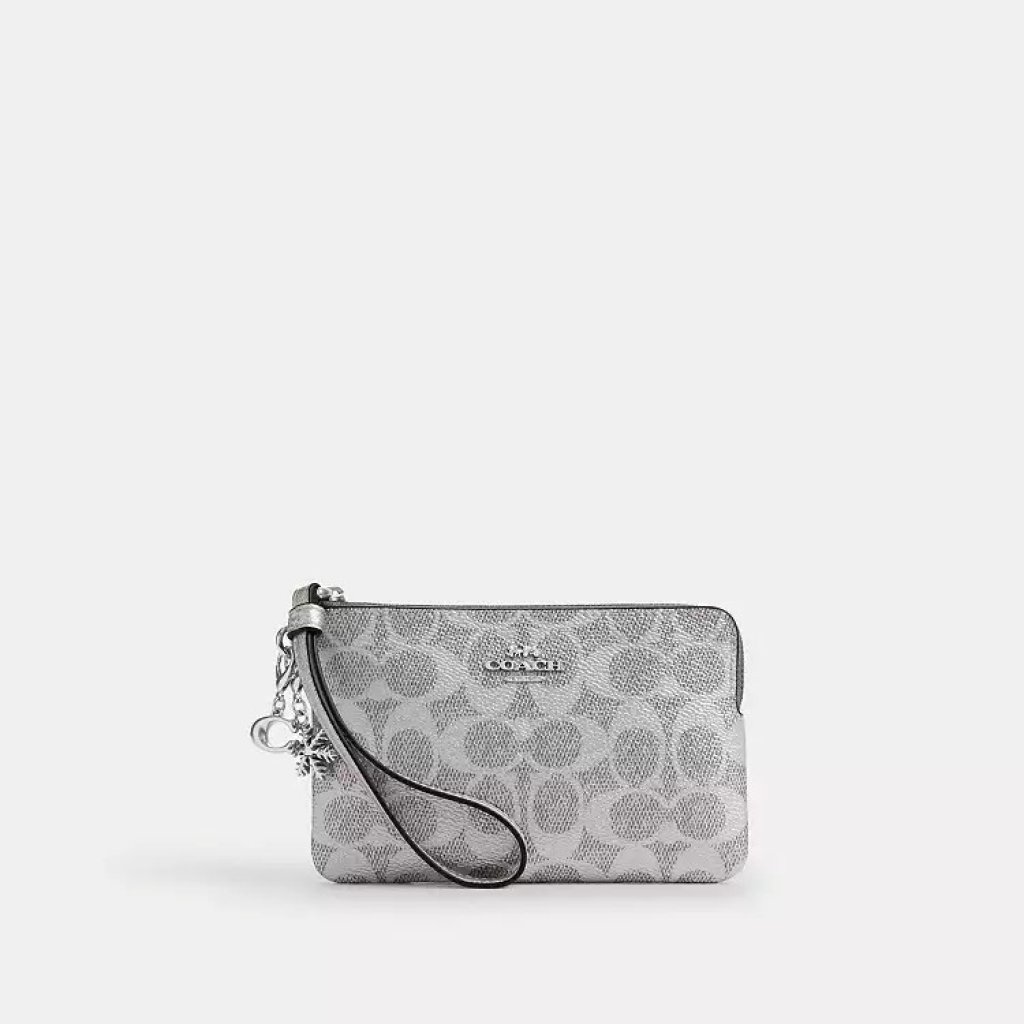 Coach 細單小手拿禮盒連吊飾 Boxed Corner Zip Wristlet (銀 silver)