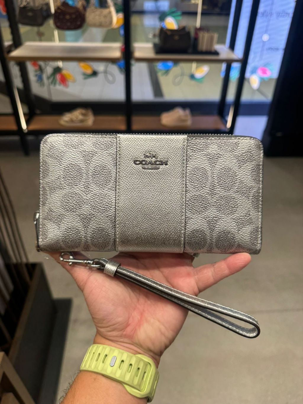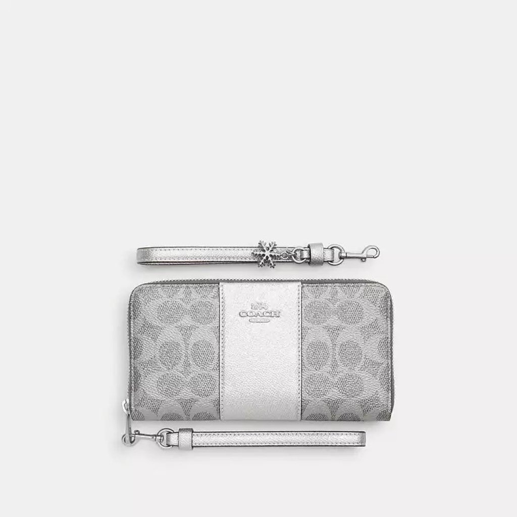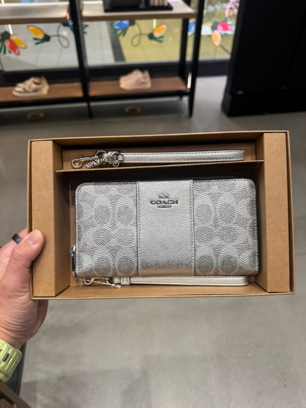 主頁 Coach 拉鏈長銀包 + 2 條手帶禮盒 Boxed Long Zip Around Wallet (銀 Silver)