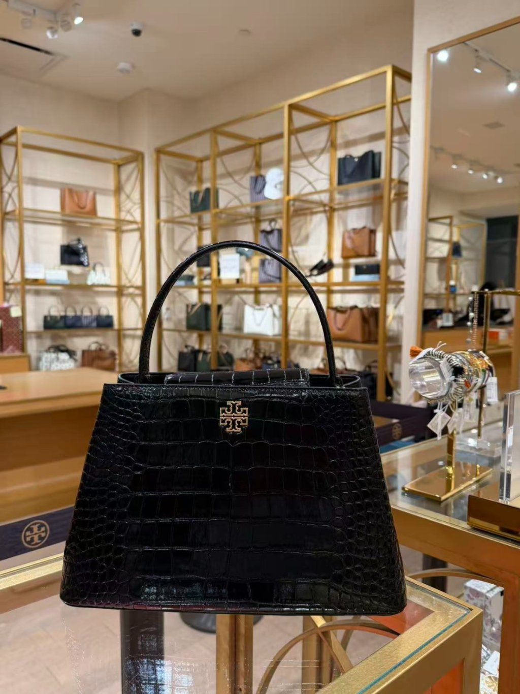 主頁 Tory Burch Britten Small Satchel 戴妃包 (鱷魚壓紋黑 Croc Black)