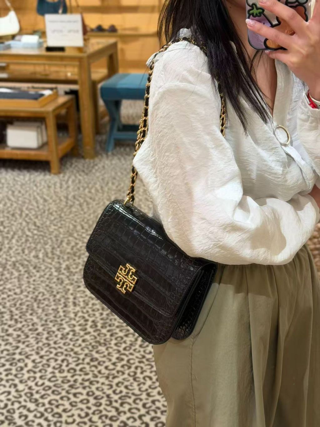 Tory Burch Britten Embossed Convertible Crossbody 小肩包 (鱷魚壓紋黑 Croc Black)