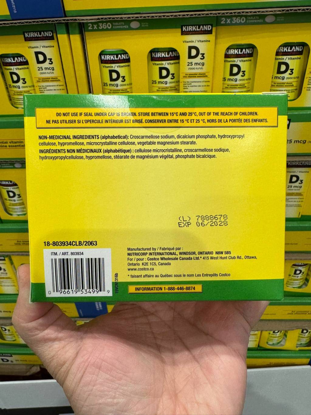 主頁 Kirkland Signature 維他命D3 1000IU 360粒 x 2 (2028/ Jun)