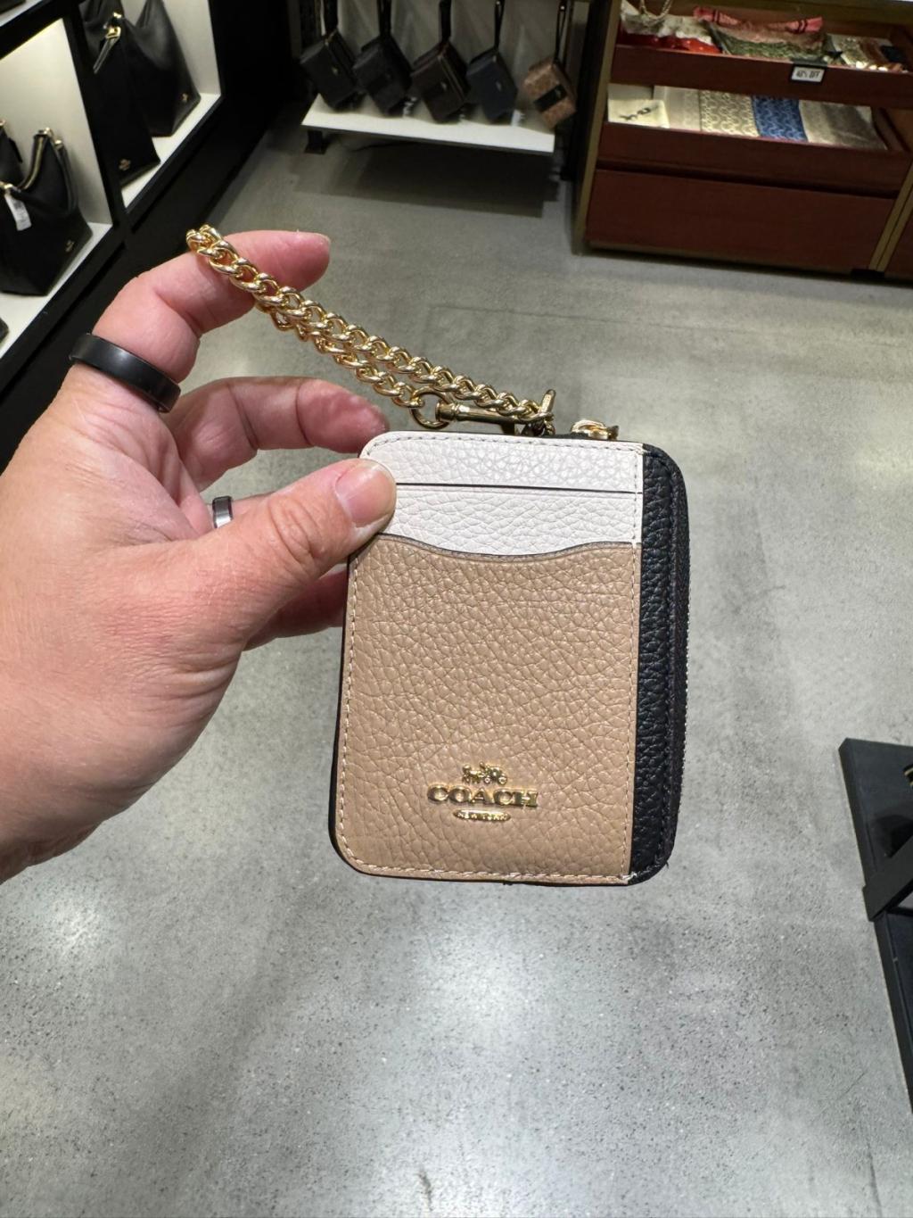 Coach 厚卡包 Zip Card Case (奶茶 拼黑 Chalk Multi)