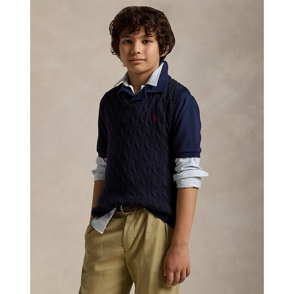 Polo RL 男童針織背心 Cable Knit Cotton Sweater Vest (深藍 RL Navy)