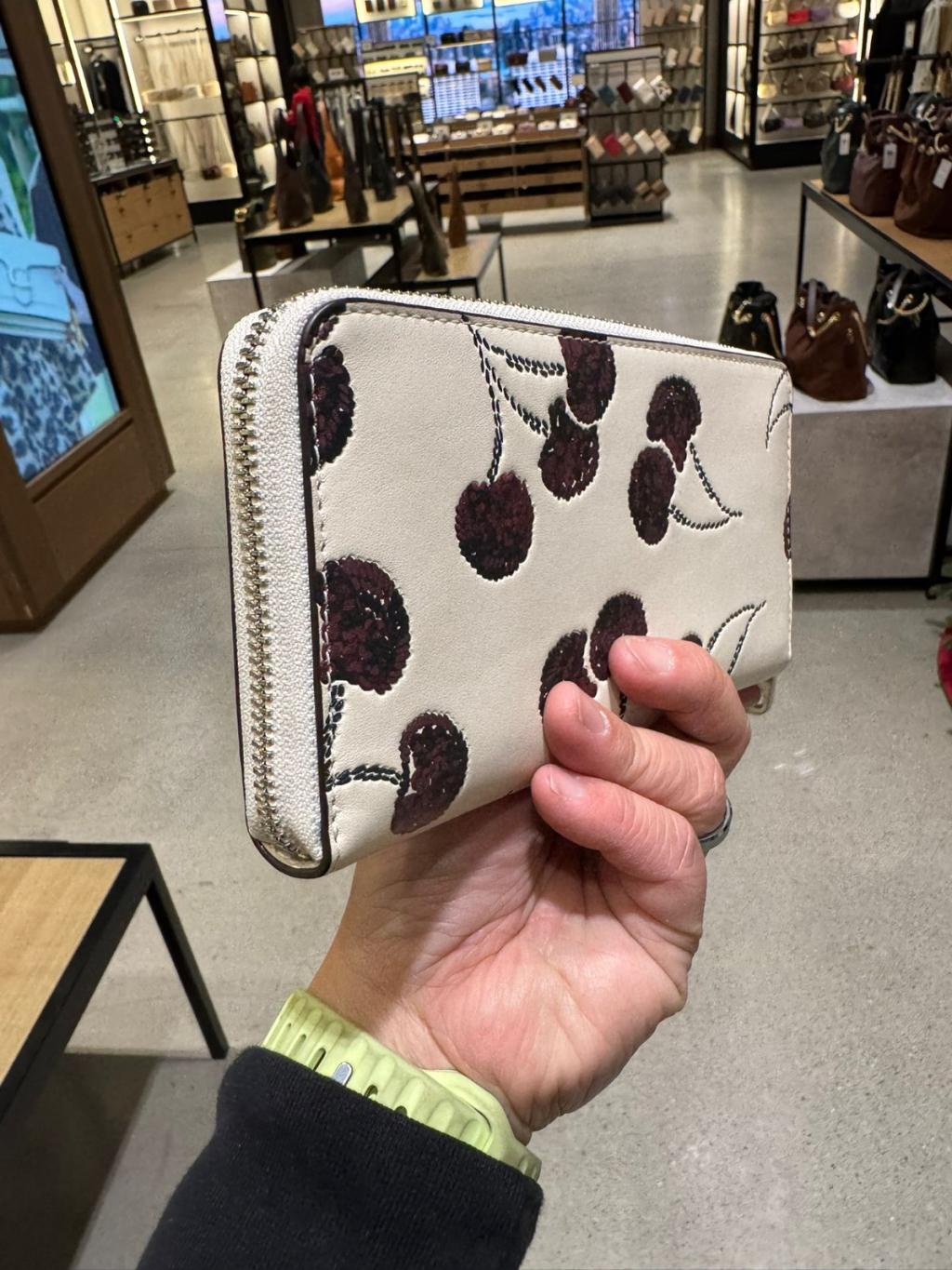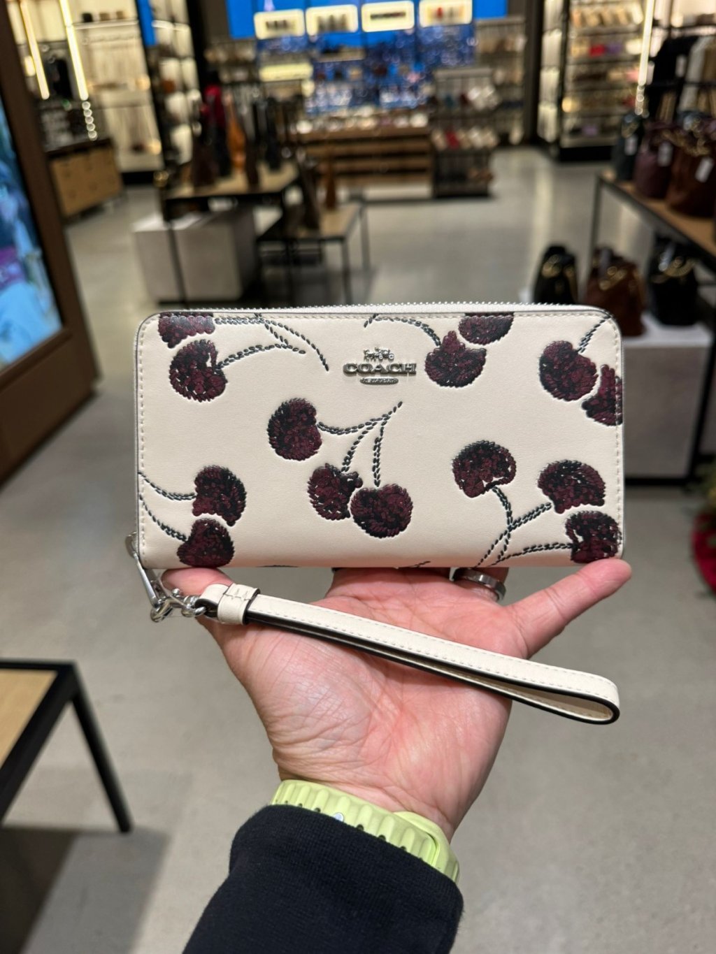 主頁 Coach 櫻桃印花拉鏈長銀包 Long Zip Around Wallet With Cherry Print (白 Chalk)