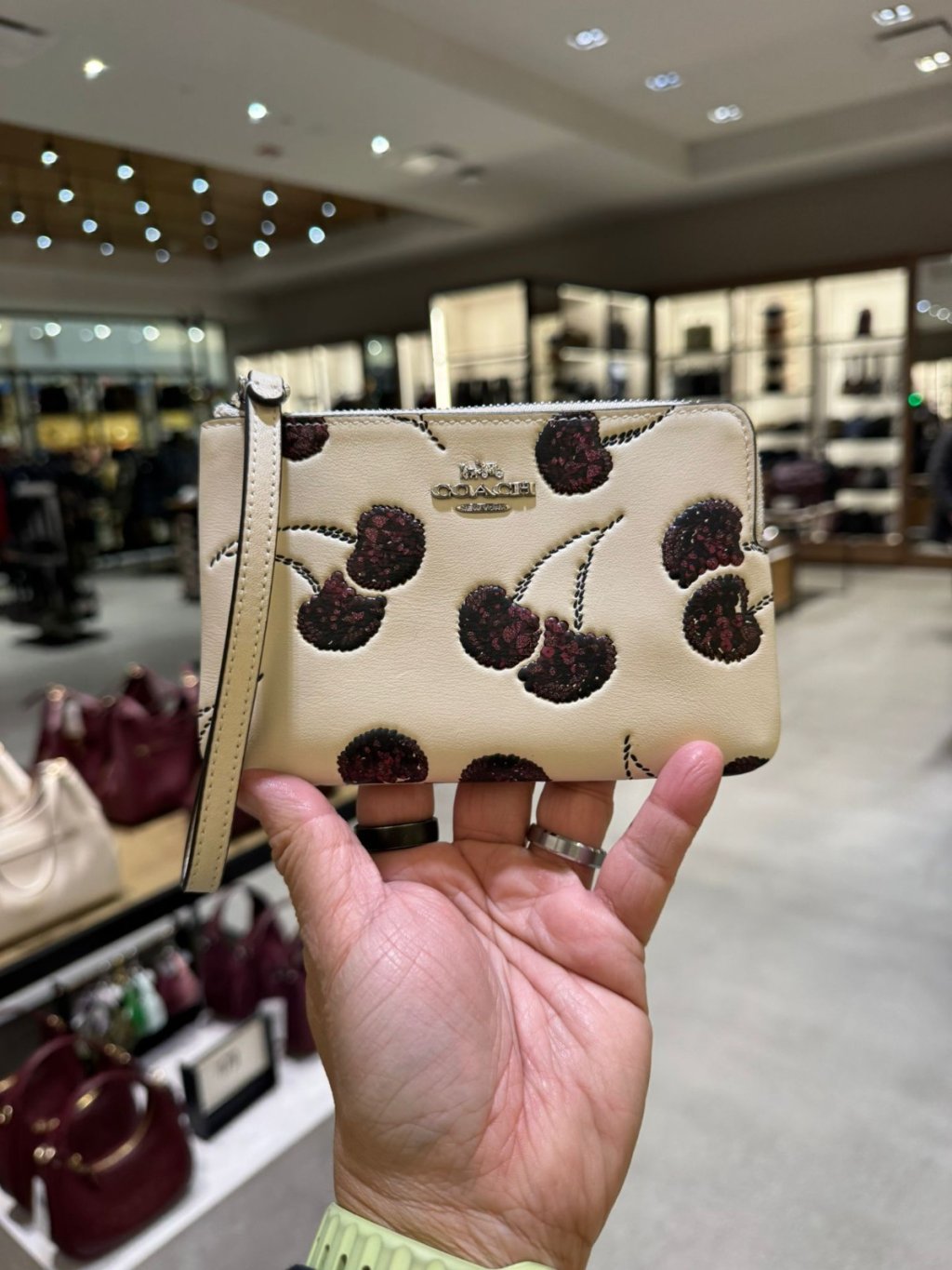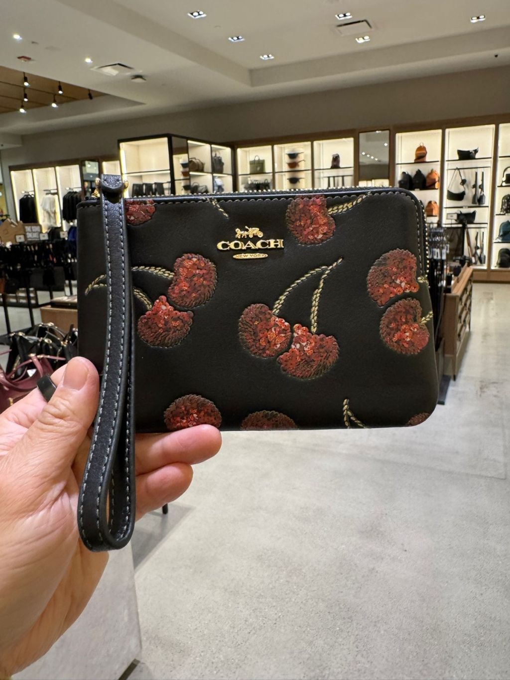Coach 櫻桃印花細單小手拿 Corner Zip Wristlet With Cherry Print