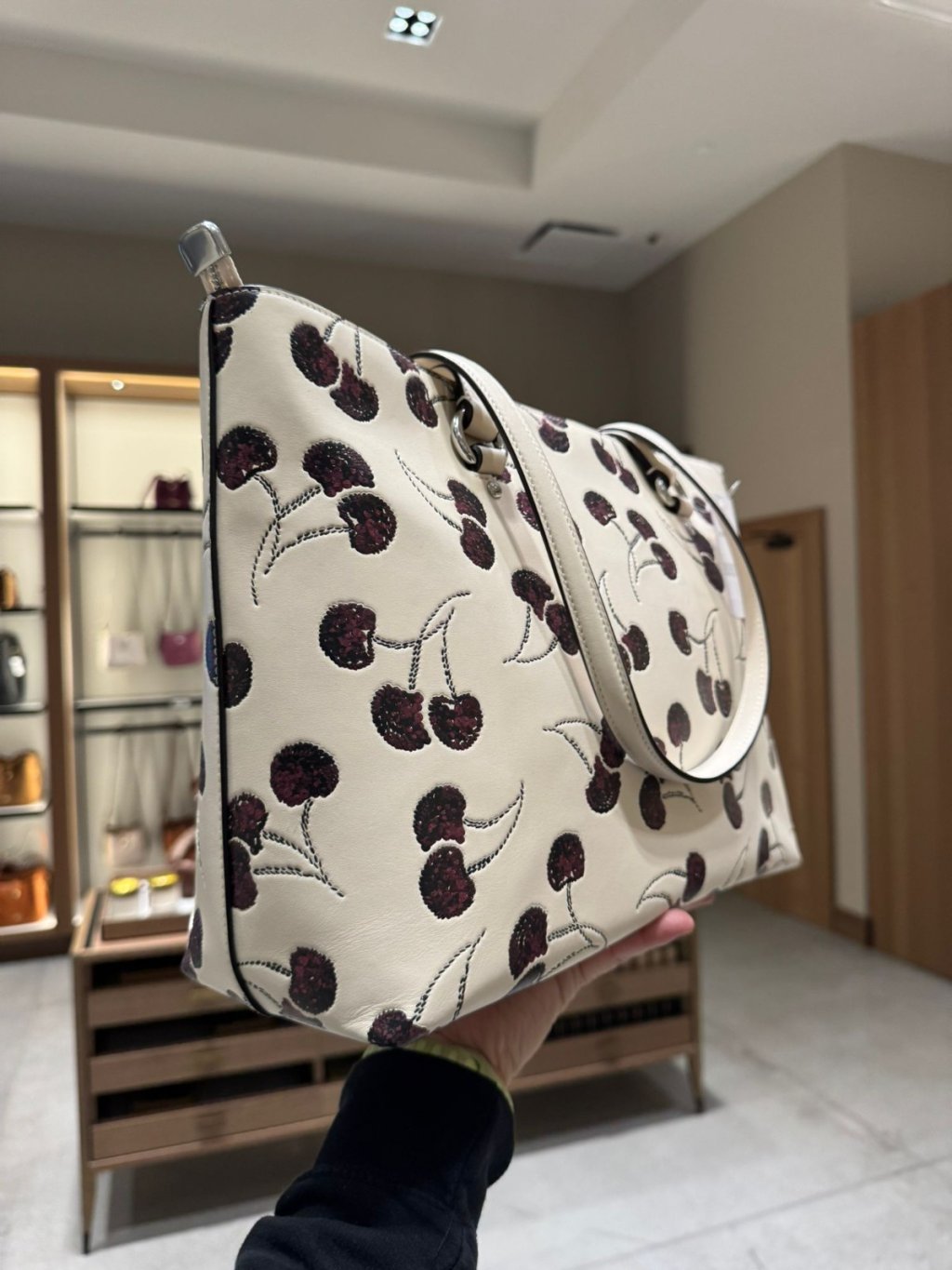 Coach 櫻桃印花拉鏈 Tote Station Tote Bag With Cherry Print (白 Chalk)