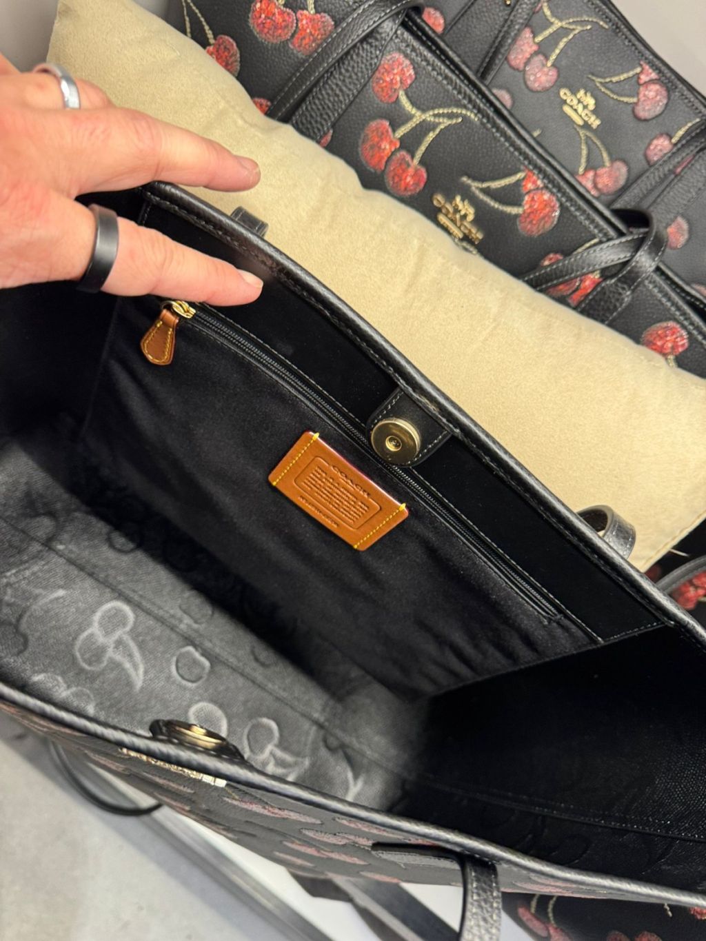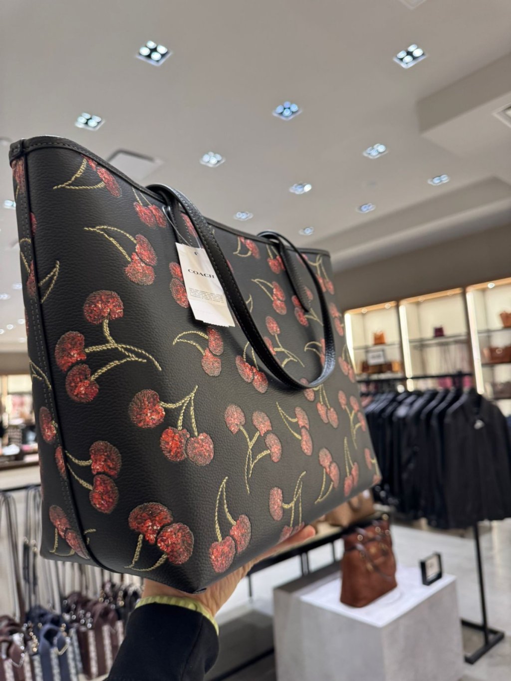 Coach 櫻桃印花開口Tote City Tote Bag With Cherry Print (黑 Black)