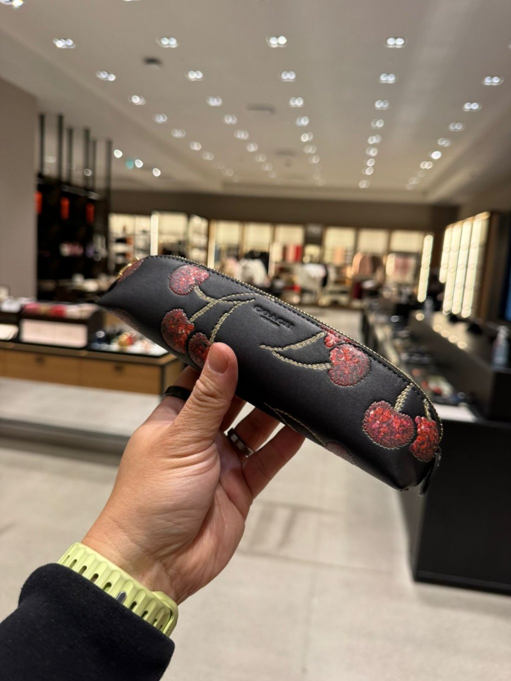 主頁 Coach 櫻桃印花筆袋 Pencil Case With Cherry Print(黑 Black)