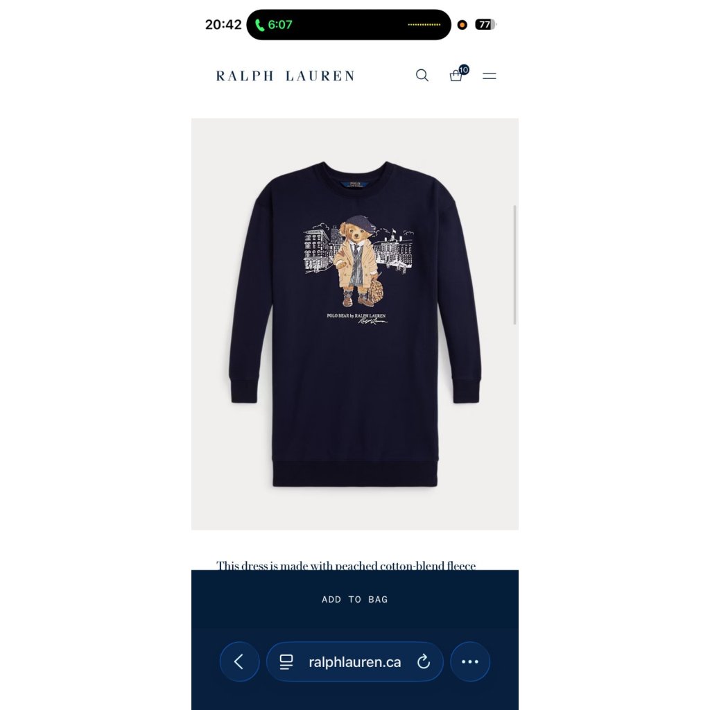 Home Polo RL Girl Bear Fleece Sweatshirt Dress