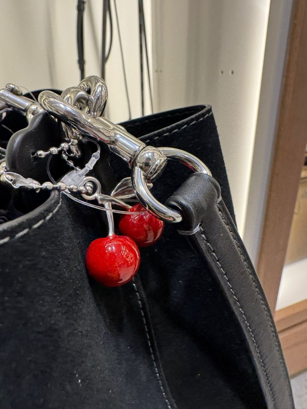 Coach Rowan Bucket Bag 麂皮水桶 (黑 x 櫻桃吊飾)