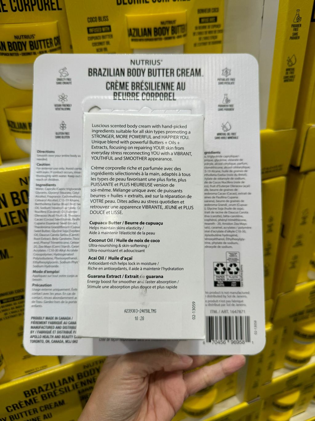 Nutrius Brazlian body butter cream 2 x 177ml 加拿大製造 (拆牌寄)