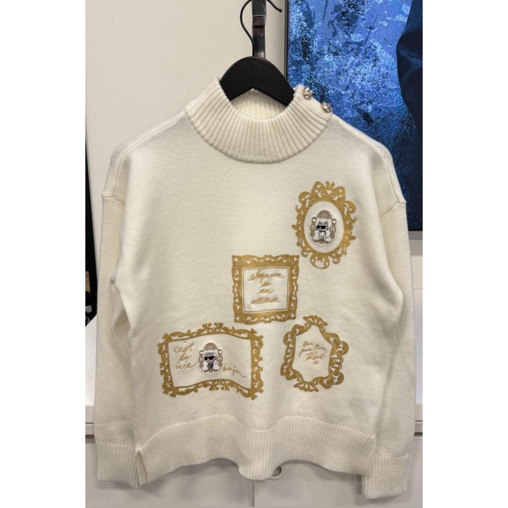 Karl Lagerfeld Karl and Choupette Frame Sweater White