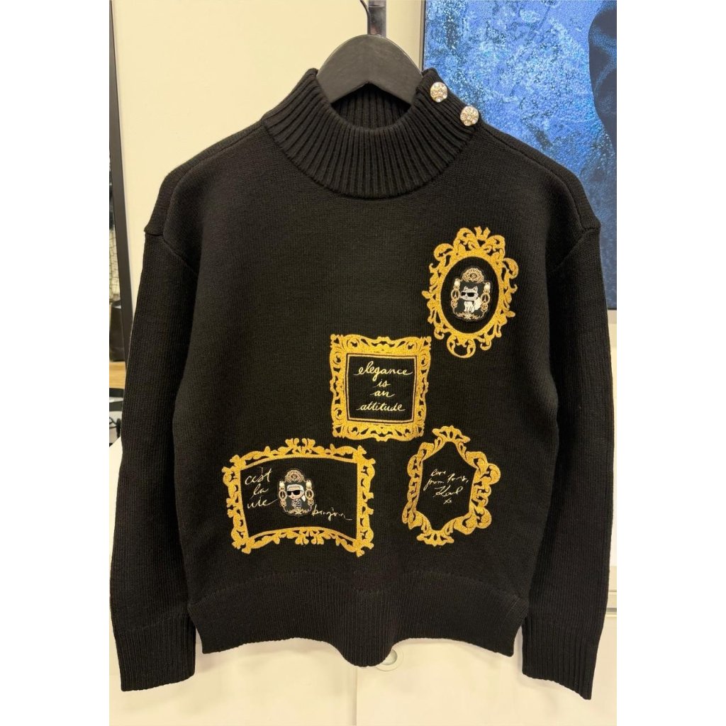Karl Lagerfeld Karl and Choupette Frame Sweater (Black)
